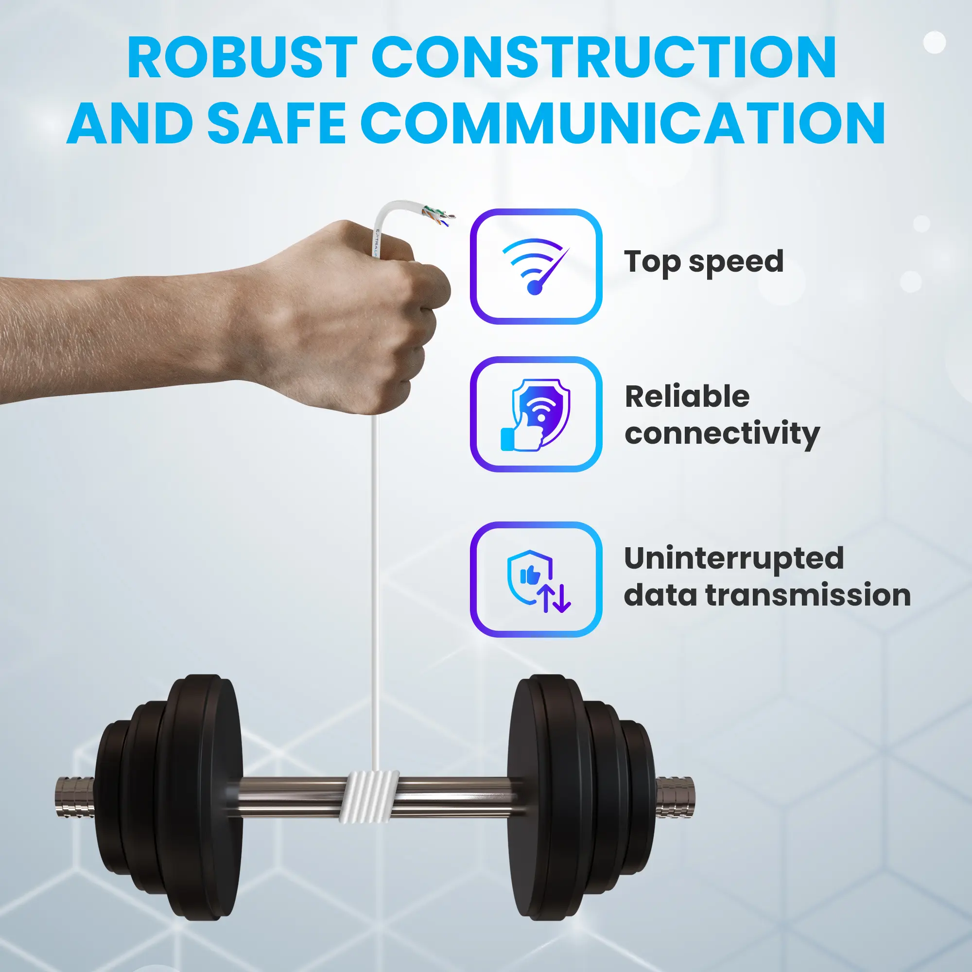 Netzwerkkabel UTP Kat. 6 wird am häufigsten für den Aufbau lokaler Netze verwendet. Die Kategorie 6 umfasst eine Verkabelung, die eine Bandbreite von bis zu 250 MHz und eine Bandbreite von 200 Mbit/s erfordert , was die Implementierung von Gigabit-Ethernet (4 x 250 MHz = 1 GHz) und ATM-Übertragung mit 622 Mbit/s vorsieht. Das vorgestellte Produkt ist aus 4 verdrillten Kabelpaaren aufgebaut, wodurch sowohl gegenseitige als auch elektromagnetische Störungen eliminiert werden. Die aus reinem Kupfer gefertigten Kabel sind von einem HDPE-Mantel mit einem Durchmesser von 0,92 ± 0,03 mm umgeben, der sich durch eine erhöhte Dichte und eine besonders hohe diaelektrische Isolierung auszeichnet. Die Kabel sind außerdem durch einen PVC-Außenmantel mit einer Dicke von 0,50 ± 0,05 mm geschützt. Das Paket muss 305 Meter Kabel enthalten.