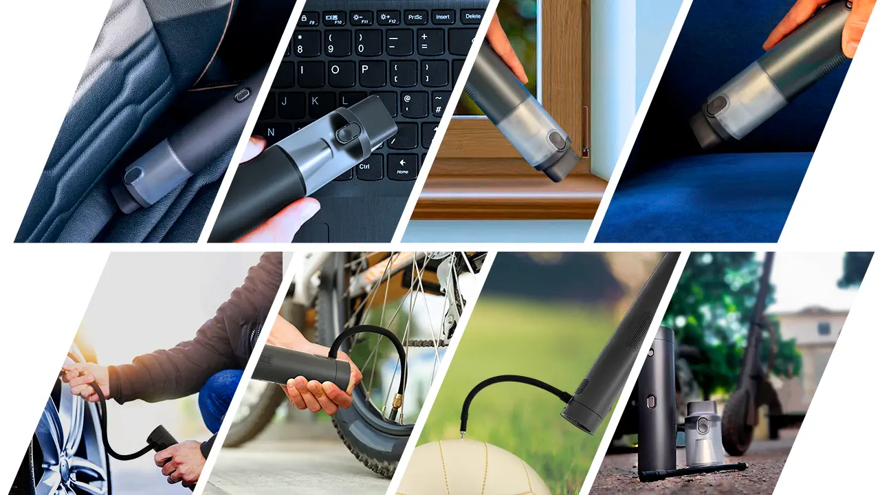 Ein Gerät zum Auffangen von Staub und zum Pumpen von Luft. Wechseln Sie per Knopfdruck zwischen Staubabsaug- und Luftpumpenmodus. Der Extralink Staubsauger und der Kompressor sind zwei Funktionen, die in einem Gerät verfügbar sind.