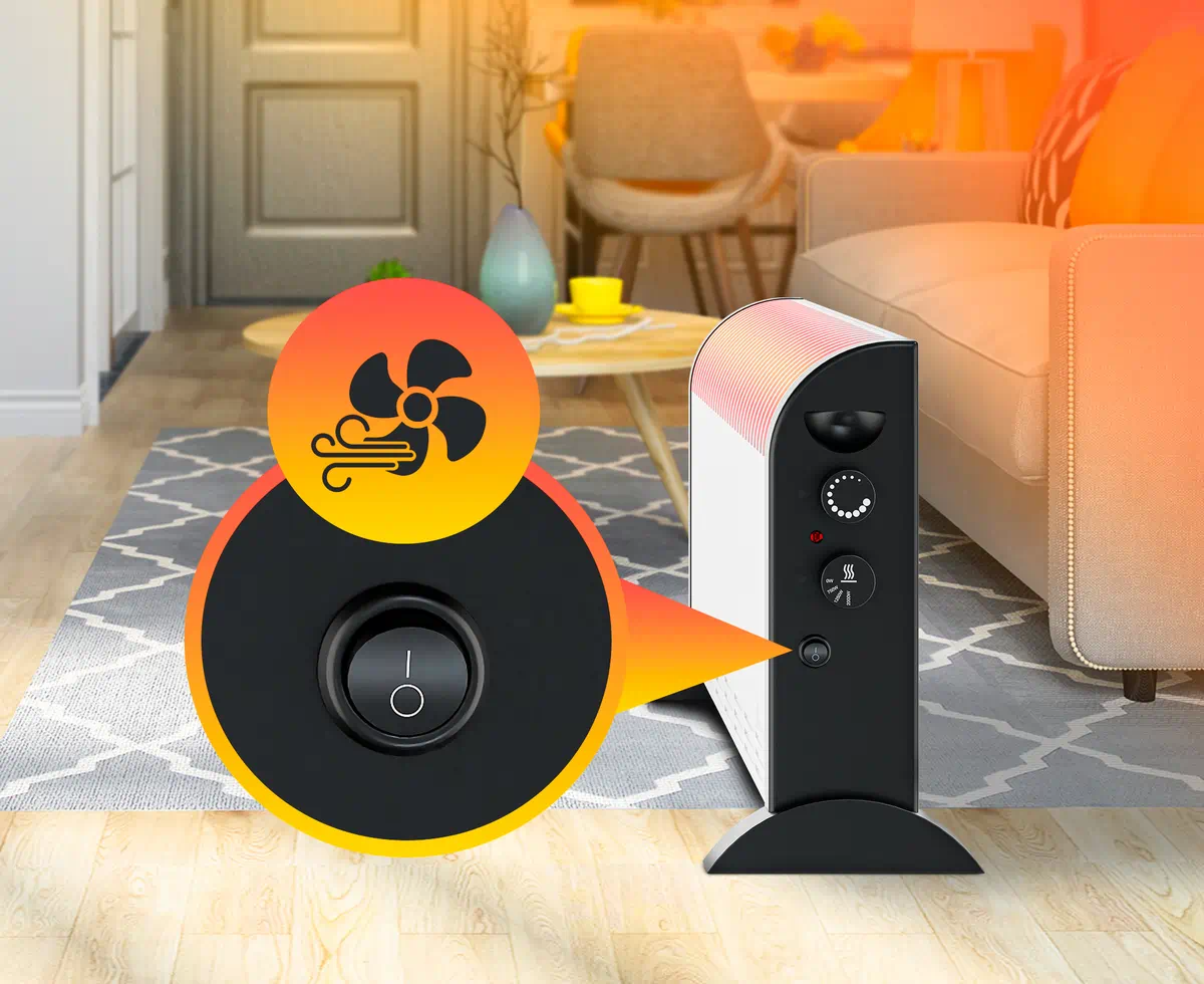 Im Turbomodus saugt die Heizung zusätzliche Luft aus dem Raum an und verteilt die heiße Luft schnell, so dass der Raum schneller aufgeheizt wird als im Normalbetrieb.