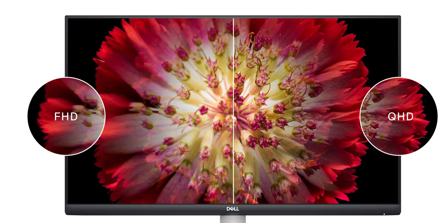 Der Dell S2721D Monitor verfügt über ein WQHD-Panel (2560 × 1440), mit dem er Bilder mit der 1,77-fachen Detailgenauigkeit der Standard-Full-HD-Auflösung darstellen kann. Dank der IPS-Technologie (In-Plane Switching) und einer 99-prozentigen Abdeckung des sRGB-Farbraums bietet der Monitor eine hervorragende Farbwiedergabe und weite Betrachtungswinkel. Dieser 27"-Bildschirm mit ultradünnen Rändern an drei Seiten erweckt jede Szene zum Leben und bietet ein unvergleichliches visuelles Erlebnis.