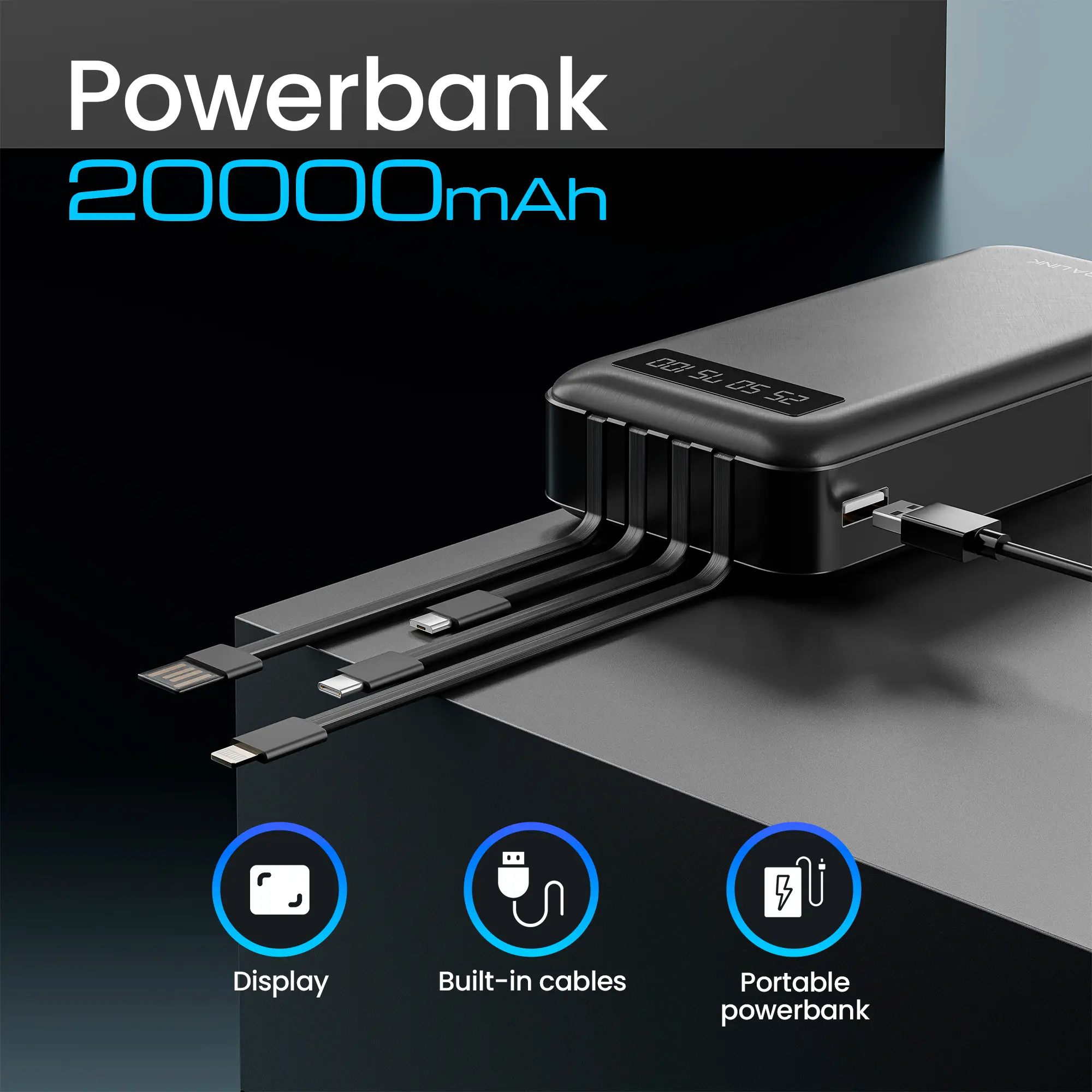 Die Extralink EPB-084 Powerbank ist eine kompakte Powerbank zu einem günstigen Preis. Die Kapazität von 20000 mAh reicht aus, um ein Gerät mehrmals aufzuladen. Die Powerbank hat integrierte Kabel in vier Standards, so dass Sie Geräte mit verschiedenen Anschlüssen aufladen können.