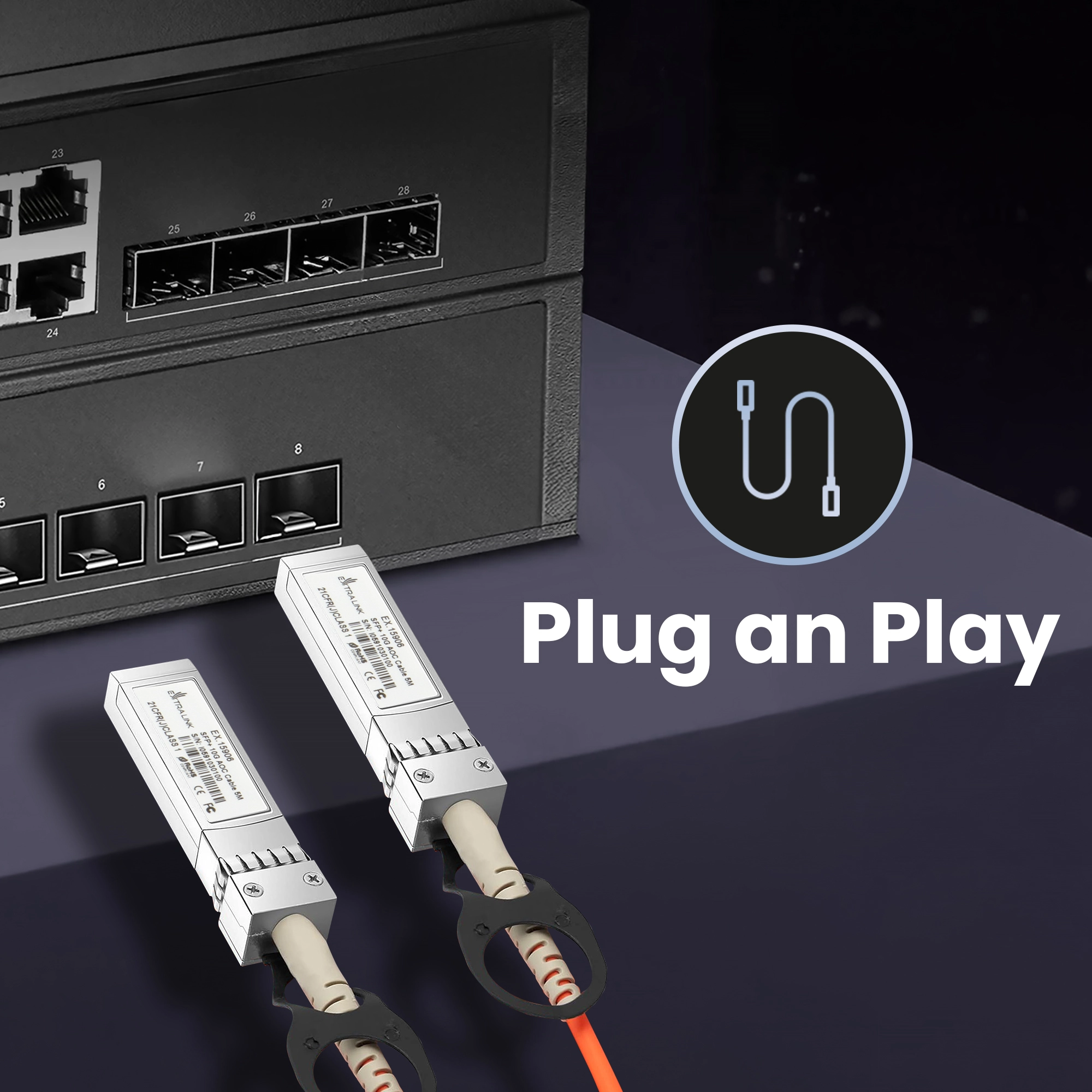 Das aktive 10G SFP-Glasfaserkabel von AOC ist ein Hochgeschwindigkeitskabel, das die mit der Verwendung von Glasfasern verbundenen Grenzen überwindet. Das AOC SFP-Kabel wurde für 10Gbps-Ethernet-Geräte entwickelt und bietet eine Hochgeschwindigkeitsübertragung von bis zu 100 Metern Multimode-Glasfaser und ermöglicht eine hohe Portdichte und die einfache Nutzung ähnlicher Kupferkabel.