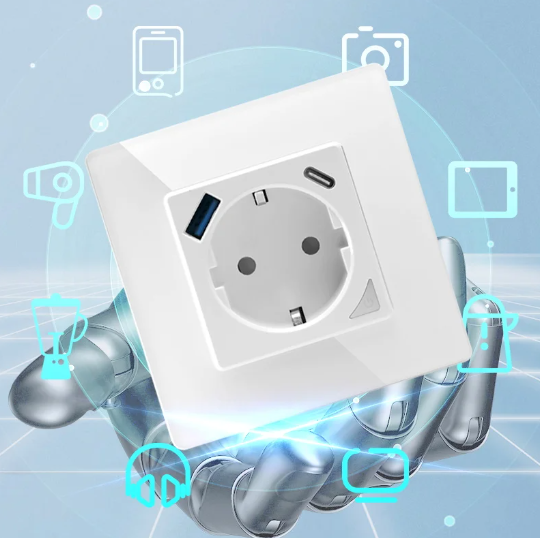 Extralink Smart Life Wall Socket Set Pro | Set: Smart-Steckdose + Rahmen | Farbe Weiß, 230V, 1x USB A, 1x USB C, WLAN, Tuya