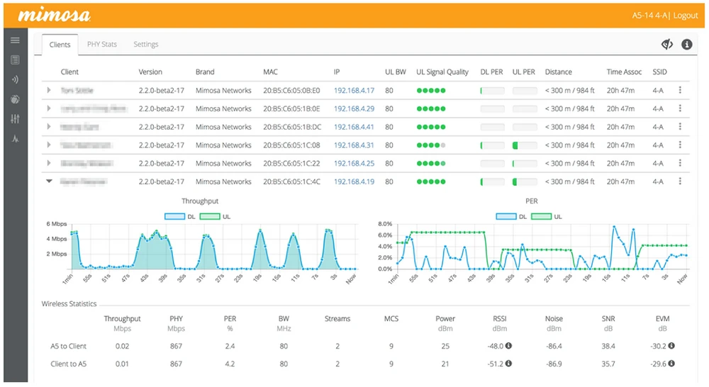 Ha hecho muchas mejoras, la más notable de las cuales es la implementación del protocolo propietario Mimosa SRS (TDMA) y la posibilidad de usar la banda de 5GHz de 4900MHz a 6200MHz.