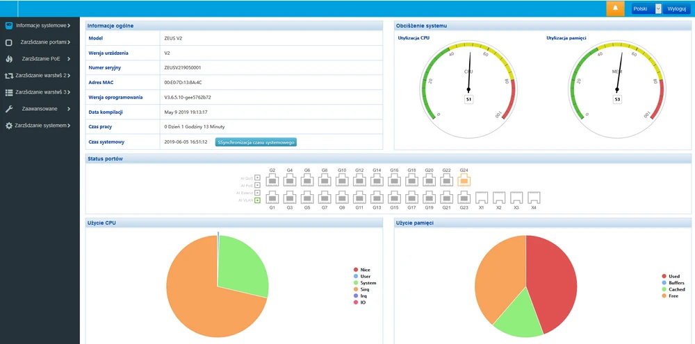 Extralink Zeus V2 es uno de los pocos interruptores PoE que soporta L3. Una funcionalidad tan grande hace que Zeus V2 sea ideal para grandes y pequeños operadores de ISP. Tanto la función PoE como la capacidad de establecer rutas estáticas de enrutamiento permiten montar este interruptor en el punto central de nuestra red. También podemos usar este interruptor en configuraciones avanzadas de monitoreo IP.