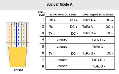 Como ya se han dado cuenta, algunos estándares de PoE funcionan en diferentes modos: A y B.