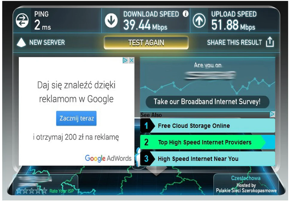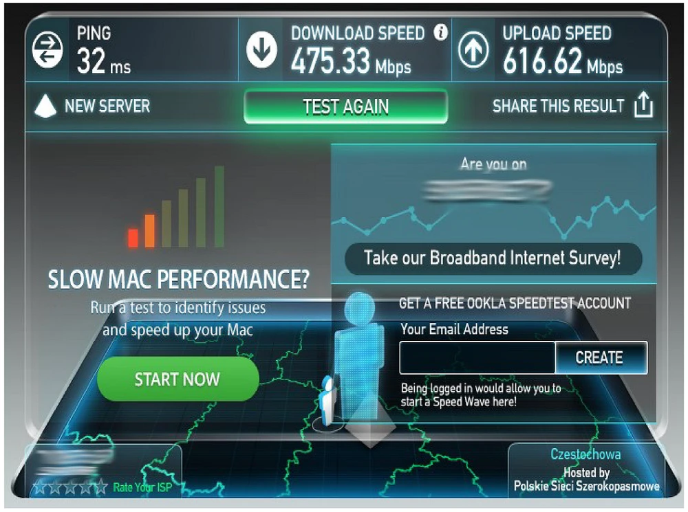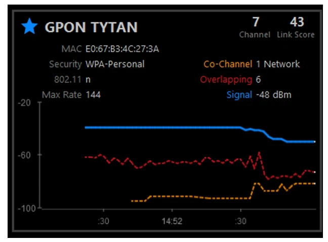 Afortunadamente, a pesar de las difíciles condiciones de uso de la red inalámbrica y el gran número de redes circundantes que operan en canales similares, EXTRALINK TITAN GPON/4GE/POTS/WIFI mostró una muy buena fuerza de señal y resultados muy decentes del ancho de banda obtenido (download/upload).