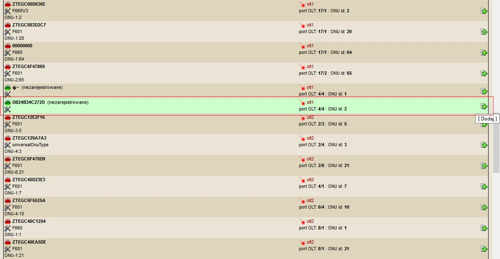 El hecho de automatizar el proceso de conexión de la punta a la red simplifica enormemente la vida de los administradores e instaladores/supervisores. Ya no necesitas "tocar" manualmente los comandos que registran la punta a OLT - sólo tienes que hacer clic en "Detectar ONU"...