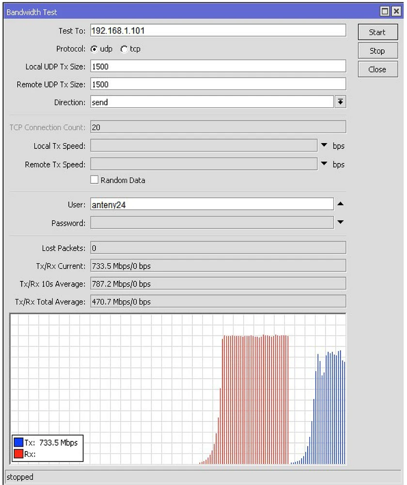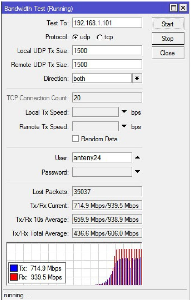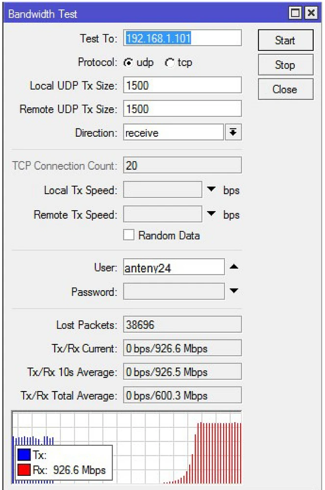 Las mediciones se llevaron a cabo utilizando el mecanismo de prueba de ancho de banda de Mikrotik y el probador de rendimiento de Speedtest disponible públicamente (como parte de la consecución de un rendimiento real).