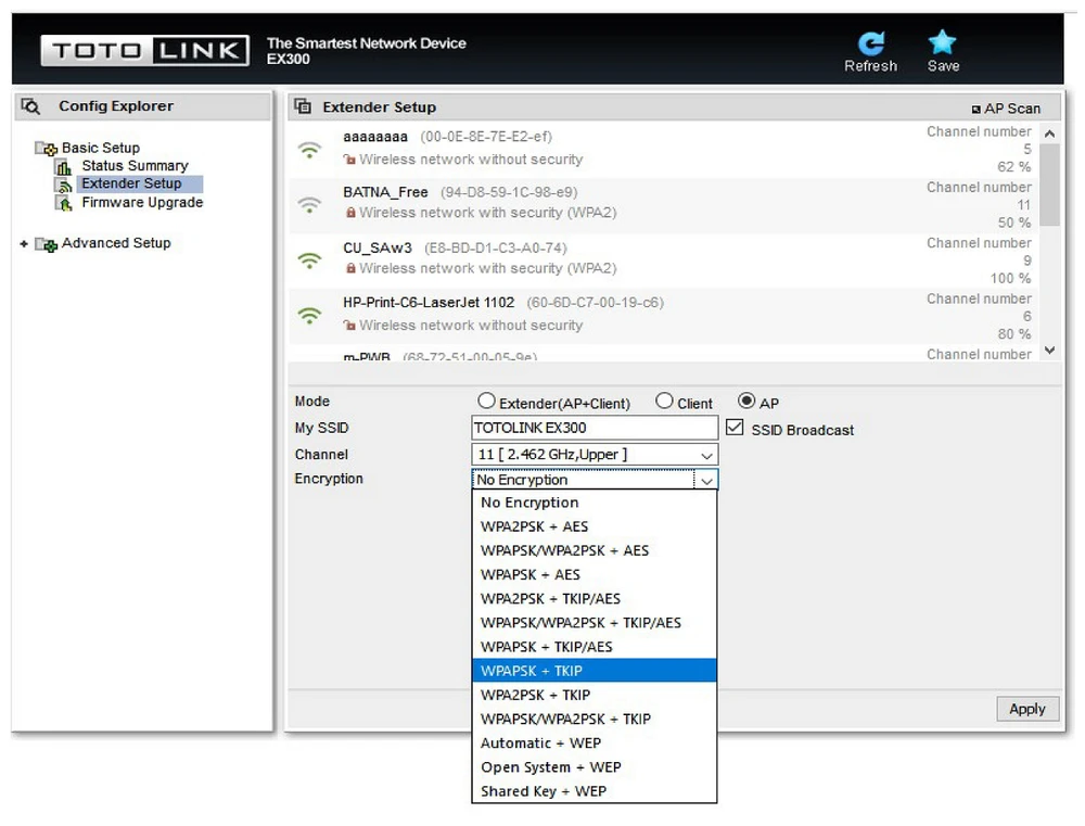 TOTOLINK EX300 tiene tres modos de funcionamiento básicos: