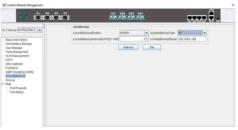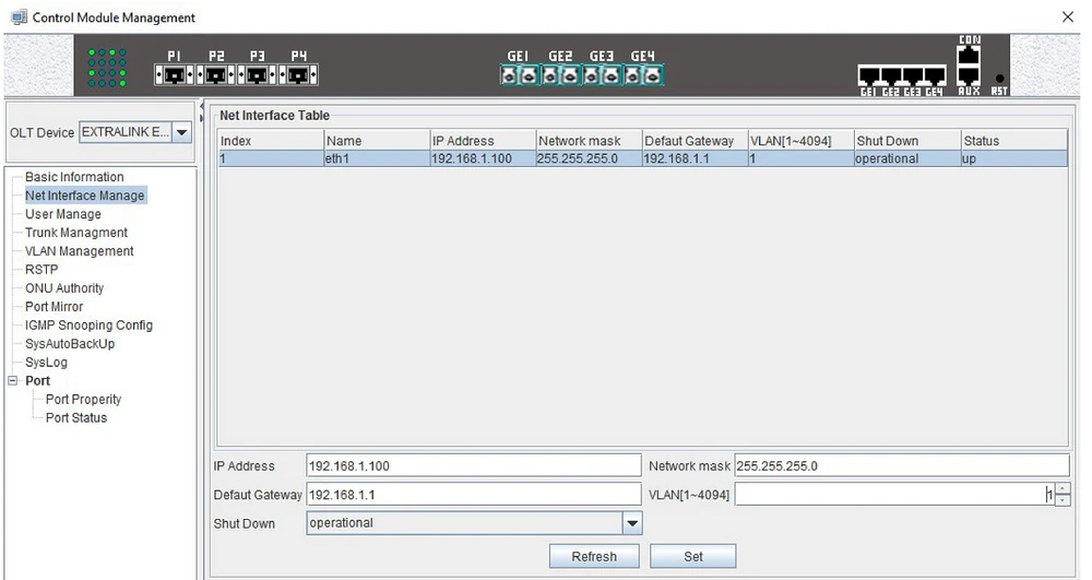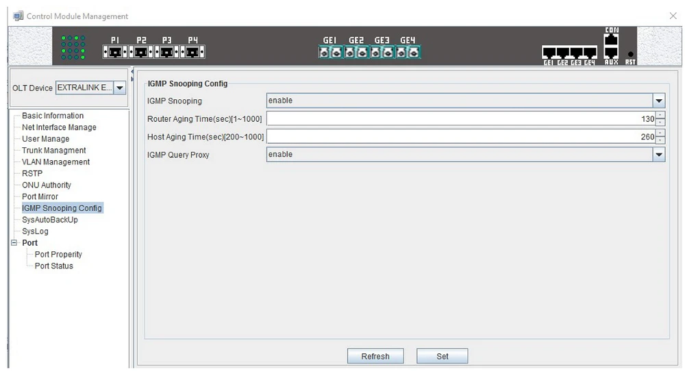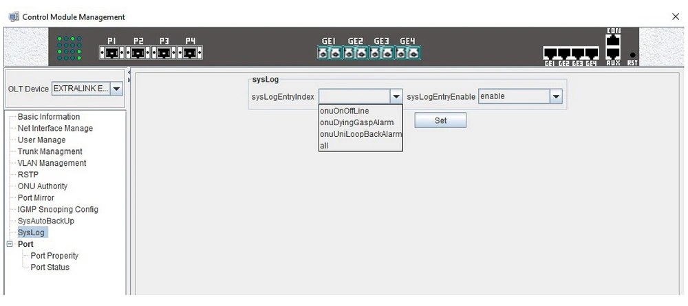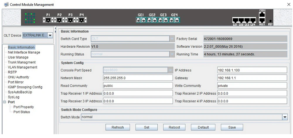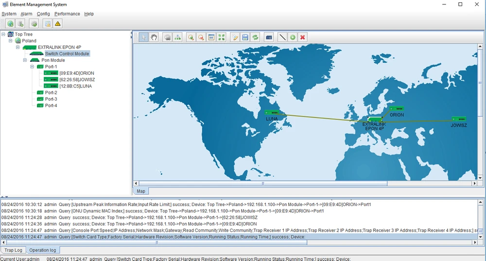 La función más interesante con la que están equipados OLTy es manejar toda la estructura del dispositivo a través del EMS (Element Management System). EMS es una plataforma de gestión de dispositivos integrada, diseñada en base al protocolo estándar SNMP.