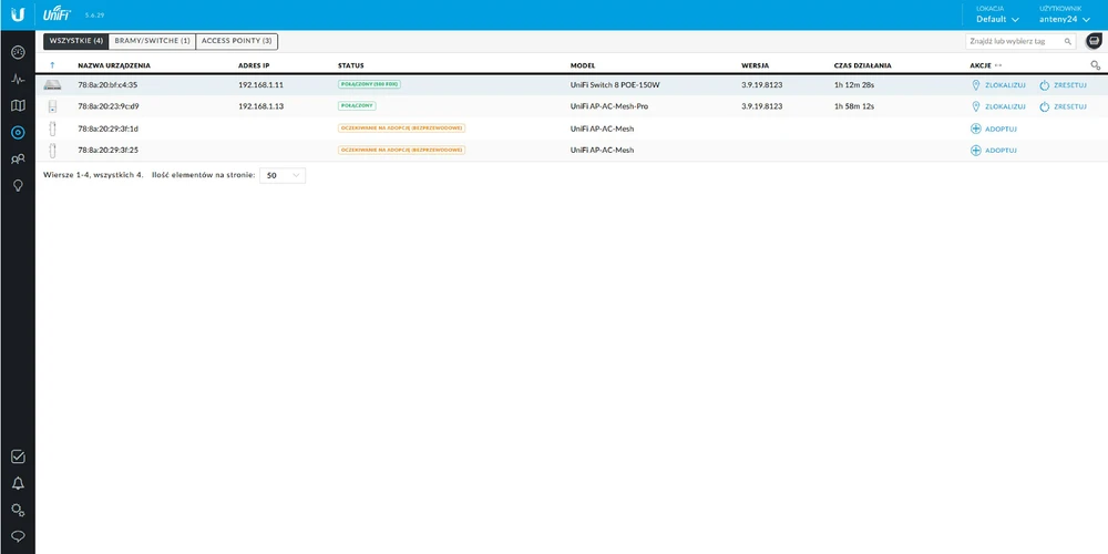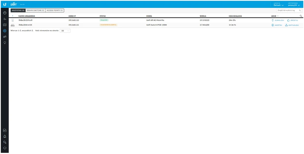 Si pasamos por el asistente correctamente, ya tendremos acceso directo a la configuración de los dispositivos individuales. Importante, en realidad lo más importante es actualizar el firmware de todos los dispositivos, y luego tenemos que adoptarlos.