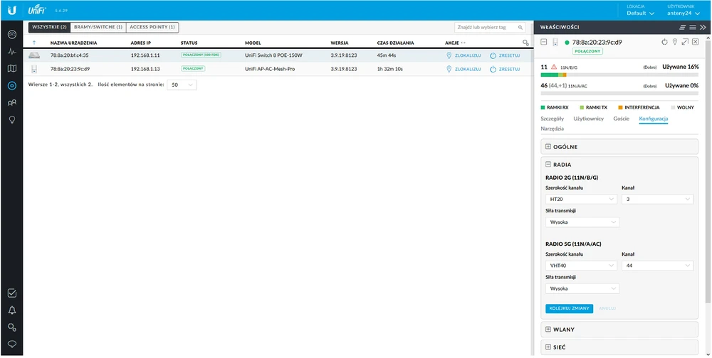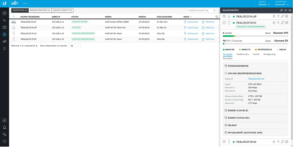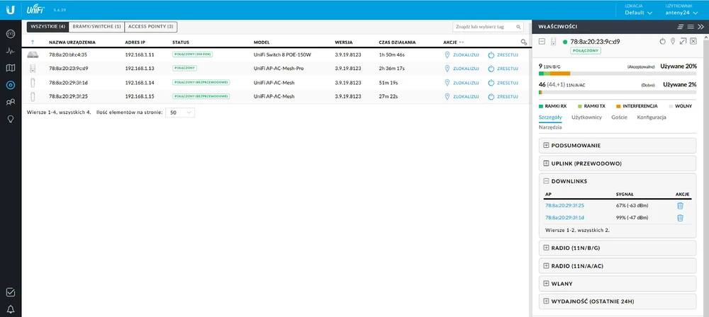 Y ahí lo tienes! De una forma tan rápida y fácil configuramos nuestra red basándonos en MESH topología. Por supuesto que tenemos acceso completo al estado de los enlaces inalámbricos individuales tanto en UniFi AC Mesh Pro como en UniFi AC Mesh. Podemos comprobar tanto la fuerza de la señal como el estado de TX/RX.
