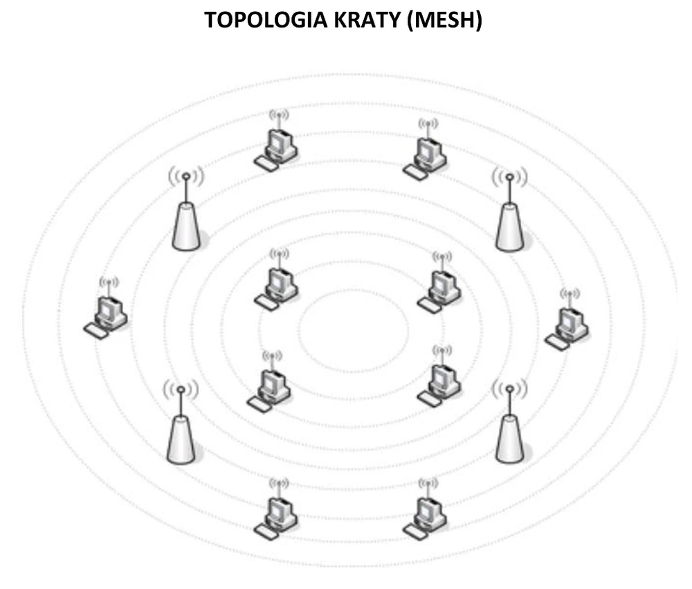 .También debería empezar por explicar el concepto de topología de red MESH, es decir, una red construida sobre la base de la topología de red/juego. El supuesto de la topología de la red MESH (red, pantallas) es la capacidad de comunicación entre los elementos de la red sin necesidad de involucrar una unidad central del tipo Punto de Acceso.