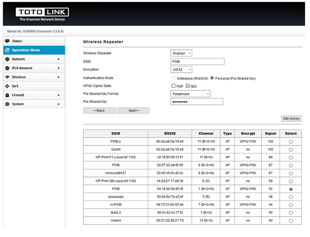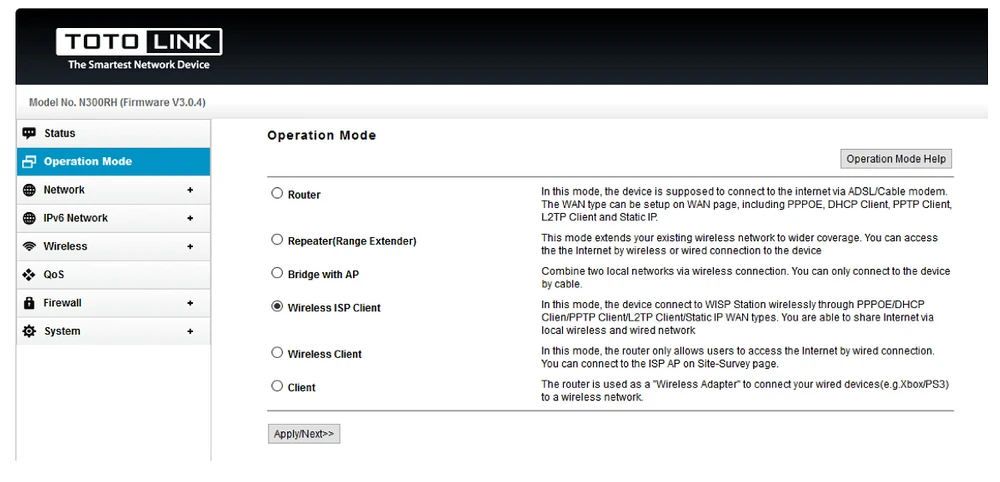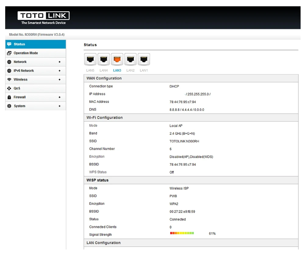 - 1x Totolink 300RH (trabajando en el modo Cliente ISP Inalámbrico)