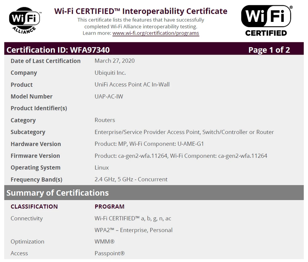 ¡Por fin! Alianza WiFi ha admitido Ubiquiti UniFi AC InWall al proyecto WiFi4EU de la UE.