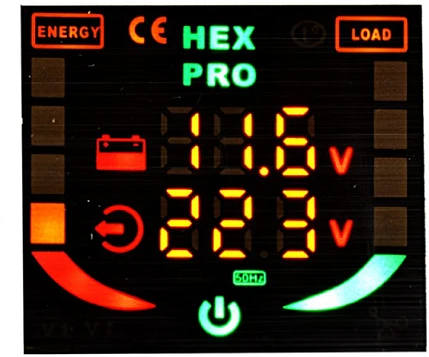 El HEX PRO 1000 24V es un inversor de tensión de la serie HEXAGEN controlado por microprocesador. El inversor tiene un control inteligente del ventilador en función de la temperatura y la carga, además, el dispositivo está equipado con una pantalla LCD única, que proporciona información visual sobre los parámetros del dispositivo. El inversor utiliza un voltaje constante (12V) de la batería para alimentar los dispositivos con 230V, y la función automática "Power SAVER" ayuda a ahorrar energía. El inversor es ideal para los lugares donde no hay posibilidad de conexión directa a la fuente de alimentación.