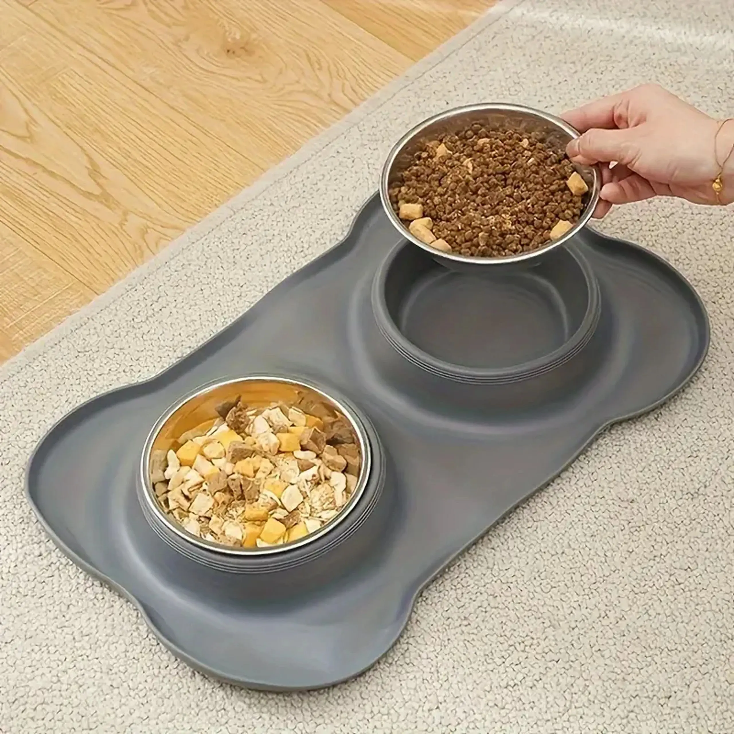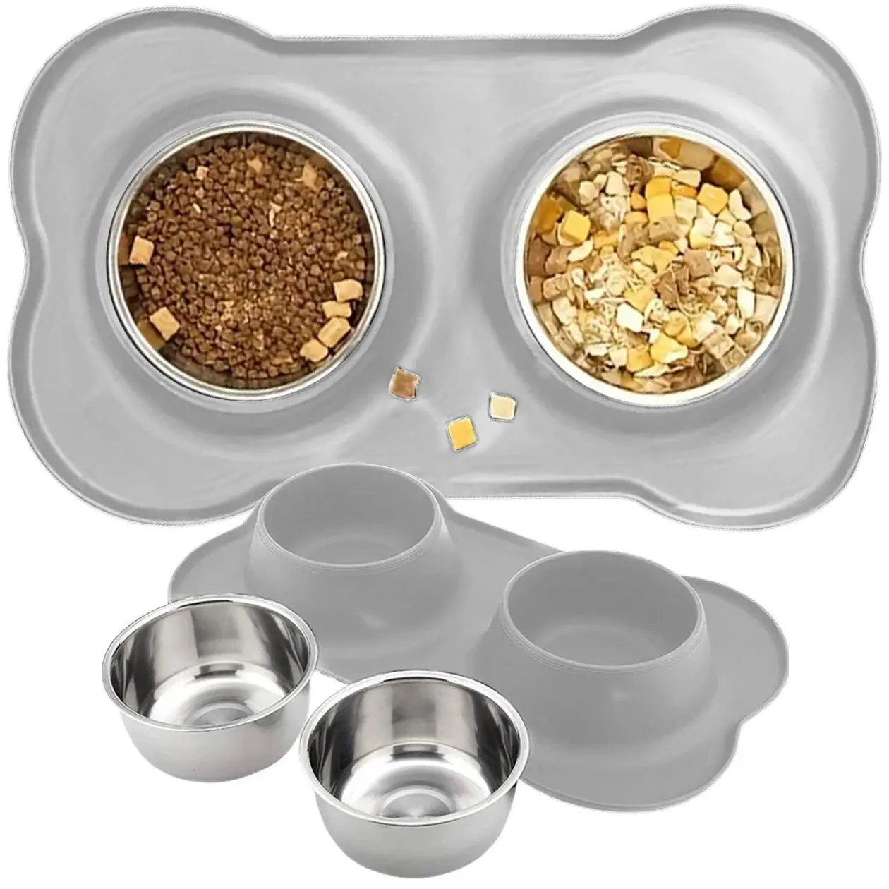 Doble Cuenco para Perros y Gatos Extralink Pets, Metal Antideslizante 2 Cuencos + Alfombrilla pet-837