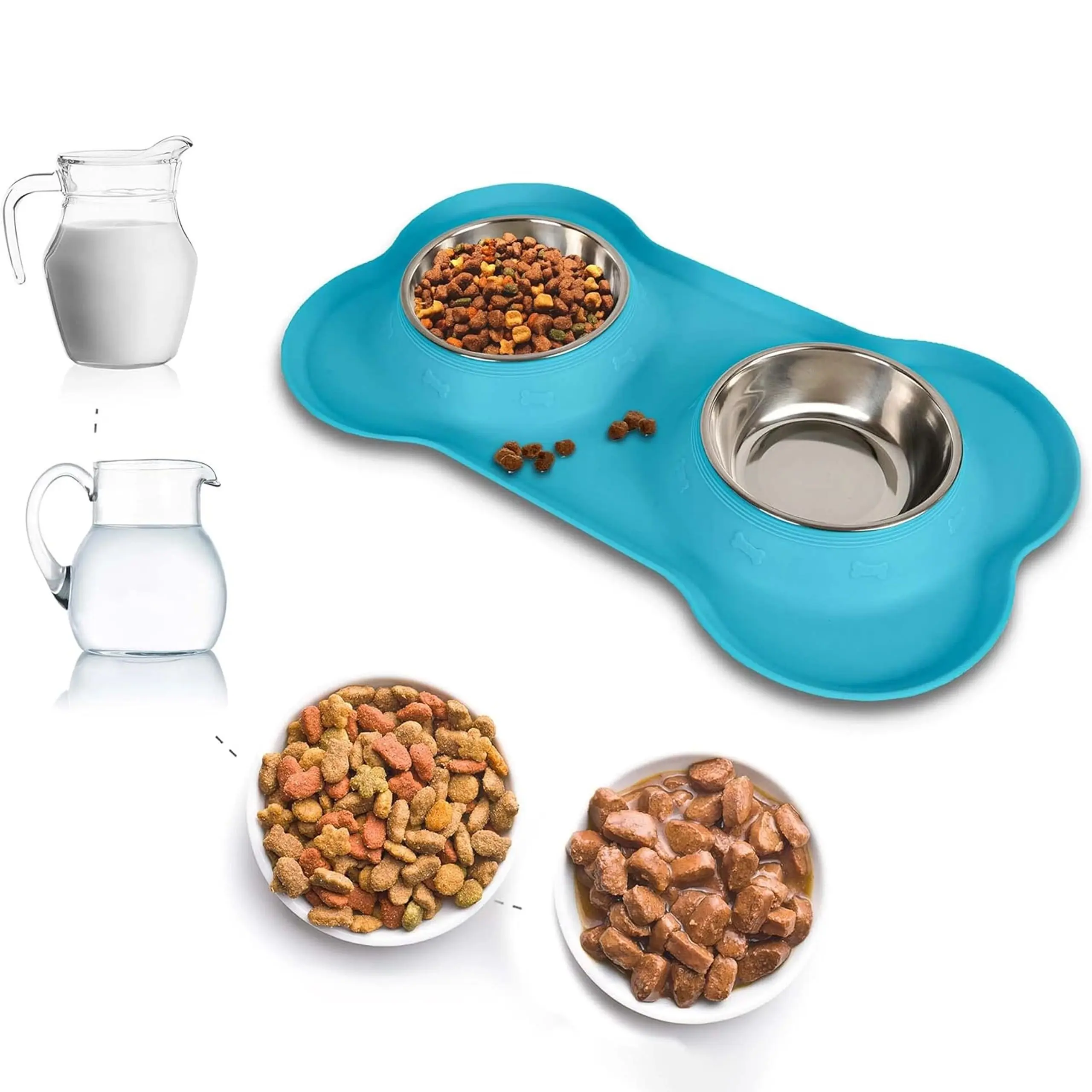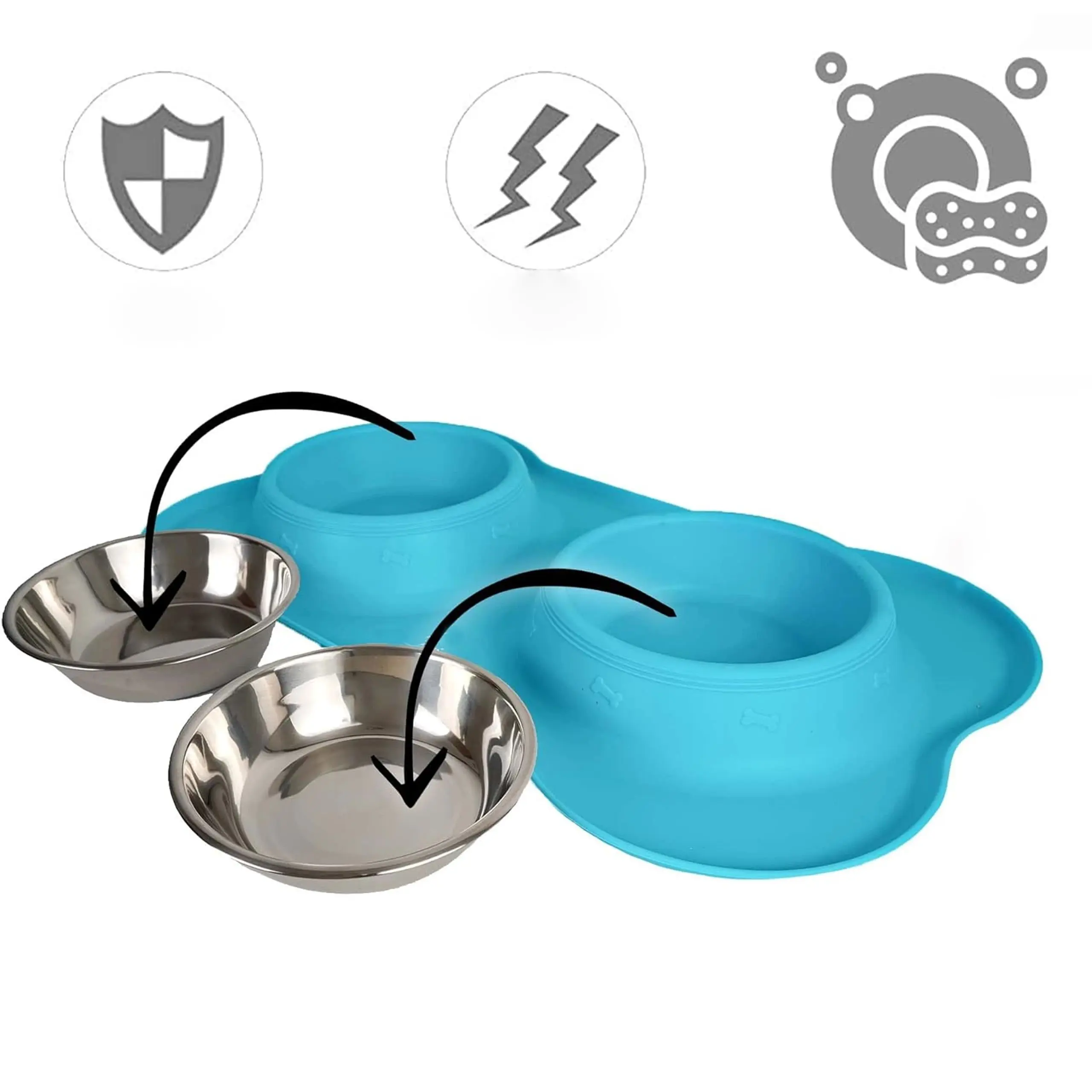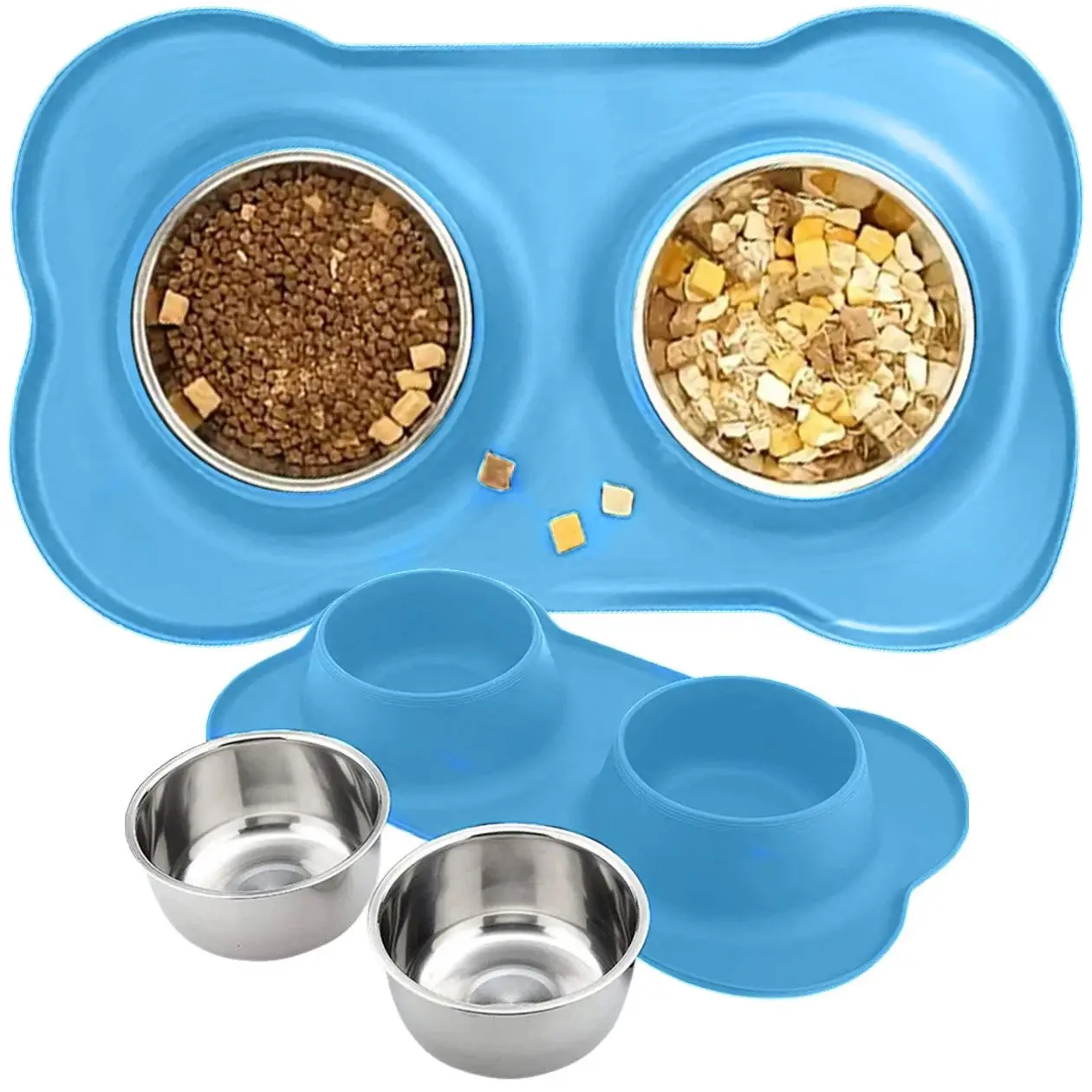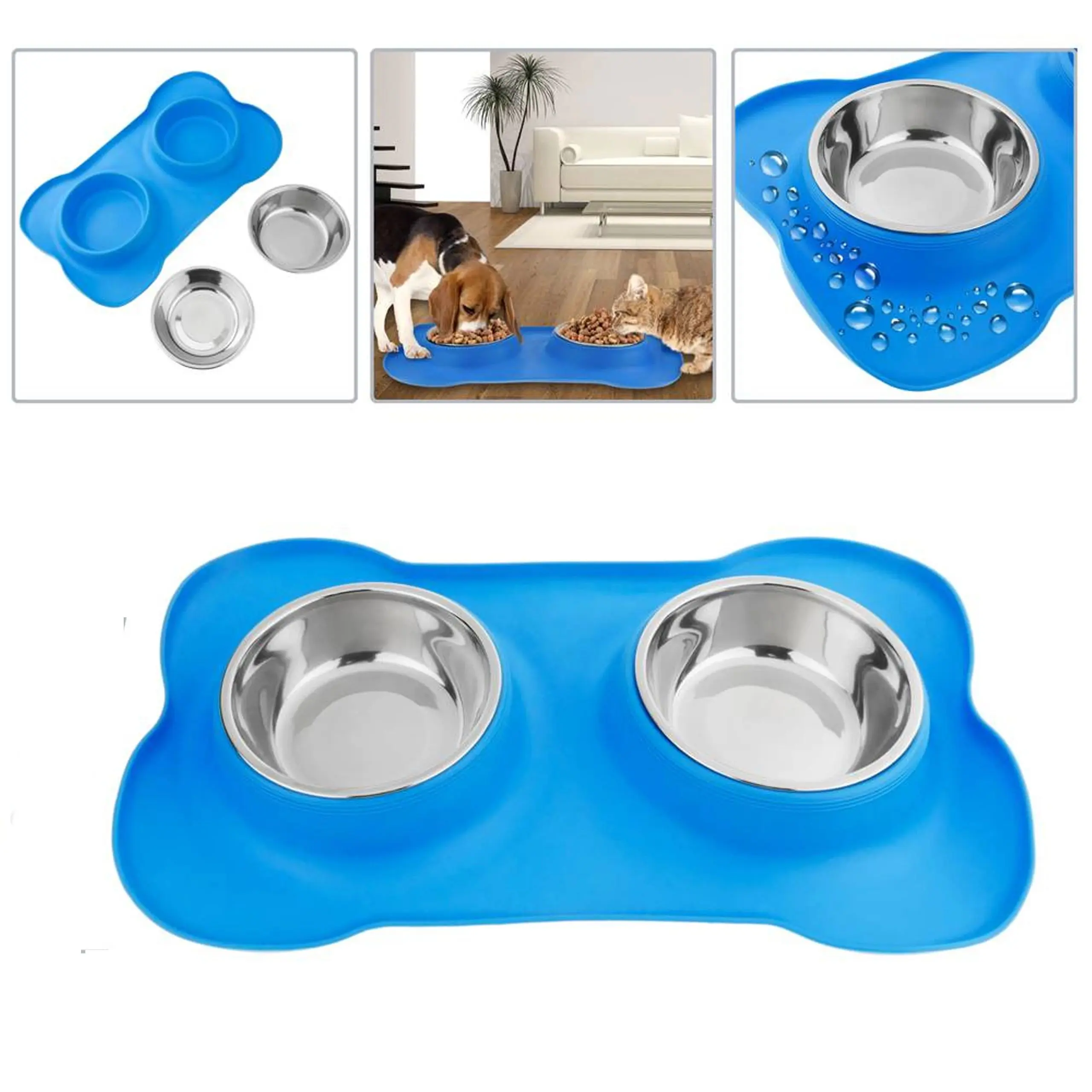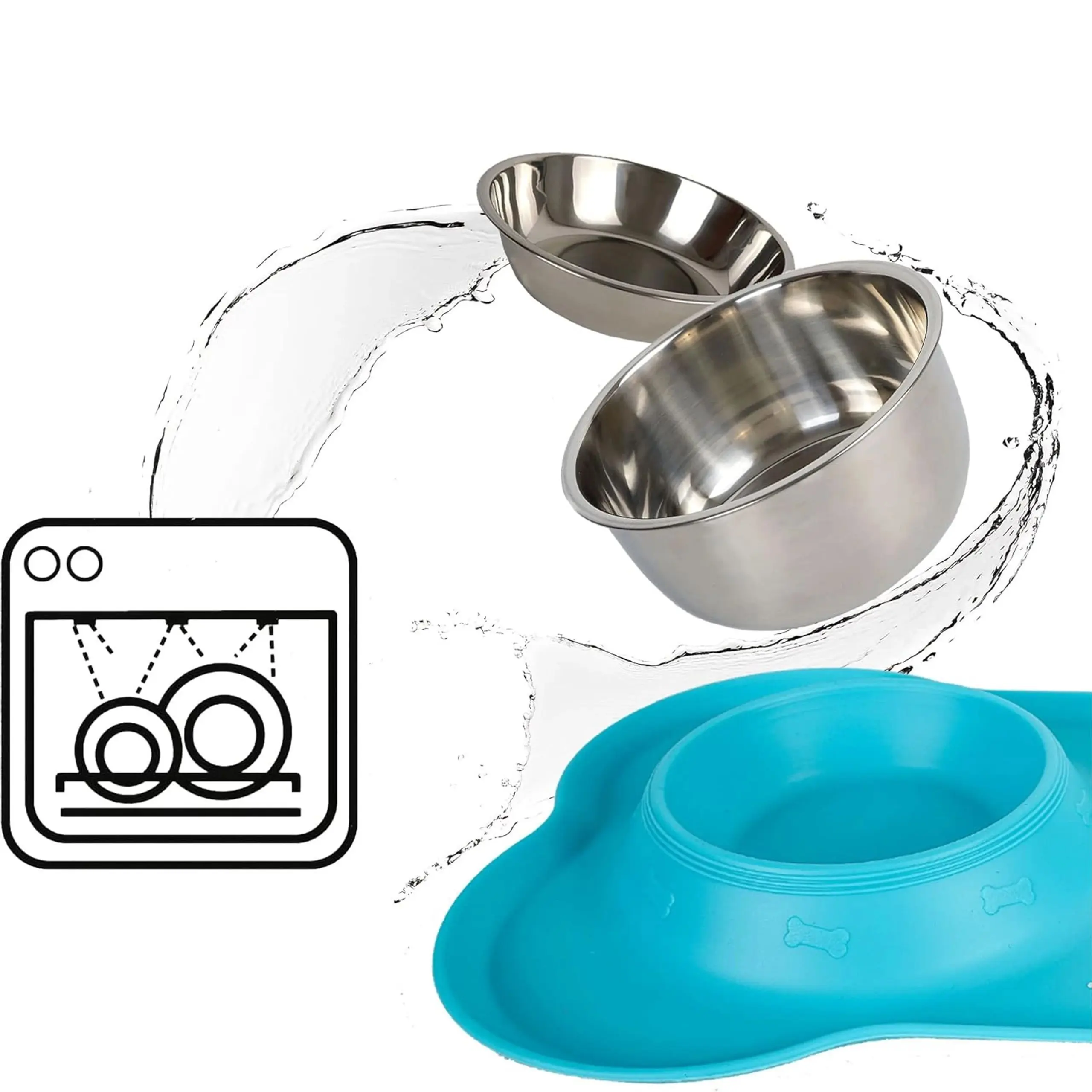 Doble tazón para perro gato Extralink Pets, metálico antideslizante 2 tazones + base pet-838