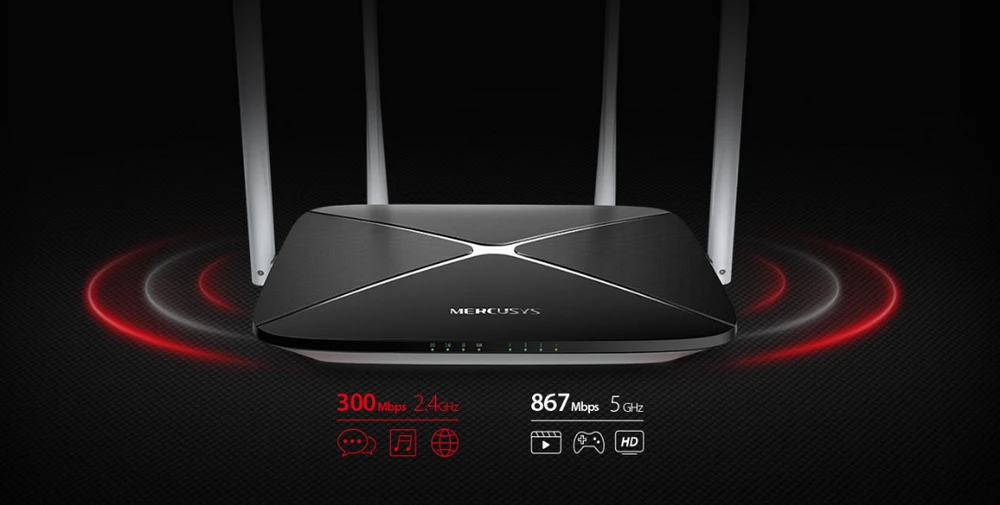 El enrutador de doble banda Mercusys AC12 crea una red Wi-Fi extremadamente rápida usando el estándar 802.11ac. La red creada con este estándar es tres veces más rápida que la 802.11n. El estándar AC se está haciendo cada vez más popular, así que el enrutador adecuado puede ser la clave para una red Wi-Fi eficiente.