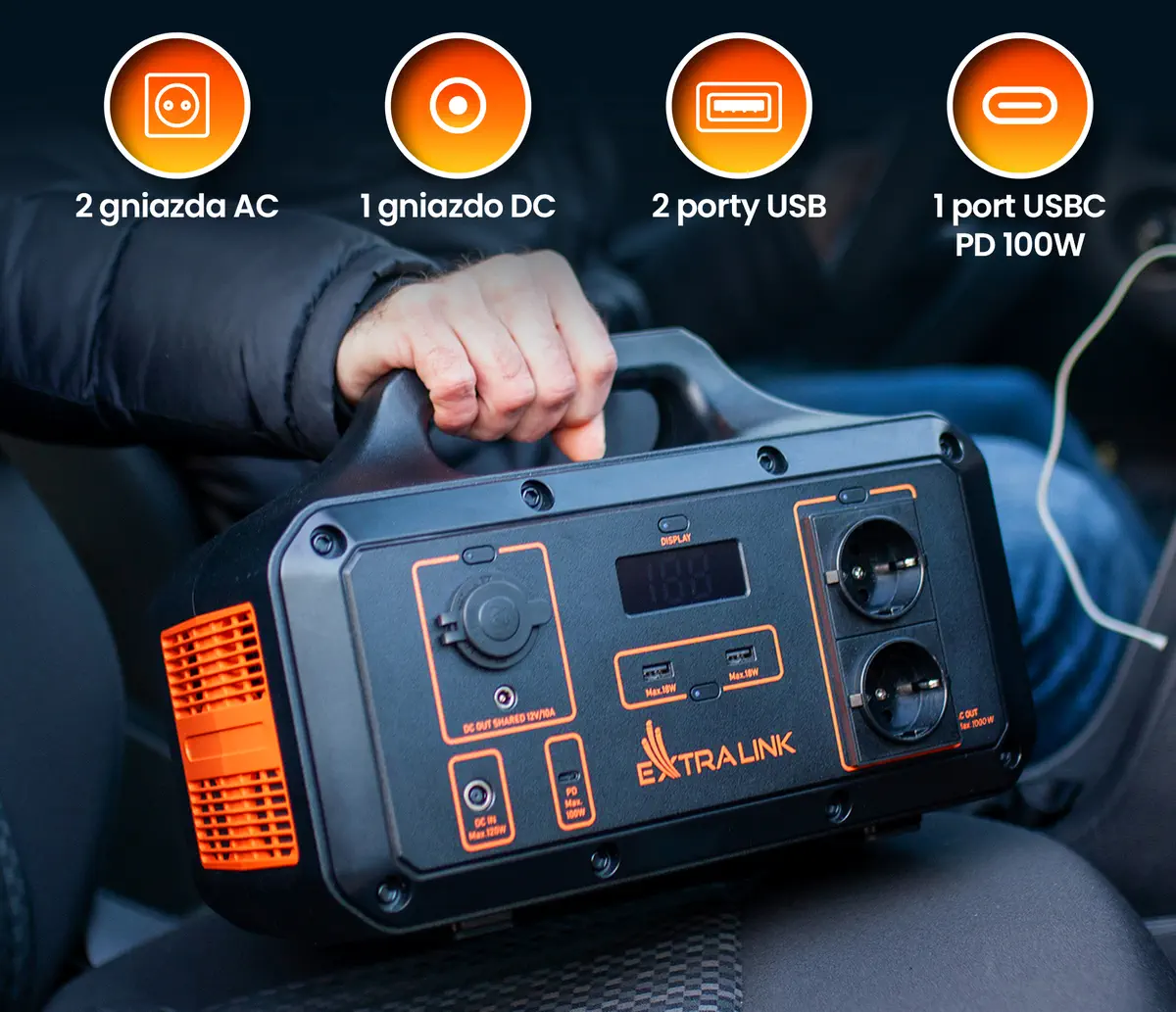 Si te quedas sin energía, puedes alimentar tus dispositivos más importantes desde la central eléctrica Extralink. Si la batería empieza a agotarse, cárgala de nuevo en poco tiempo utilizando la toma de corriente de tu casa.