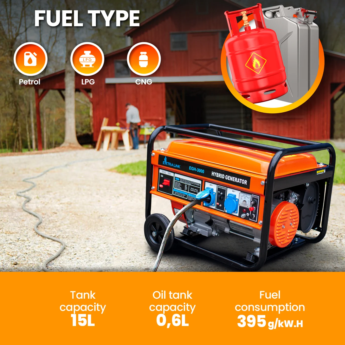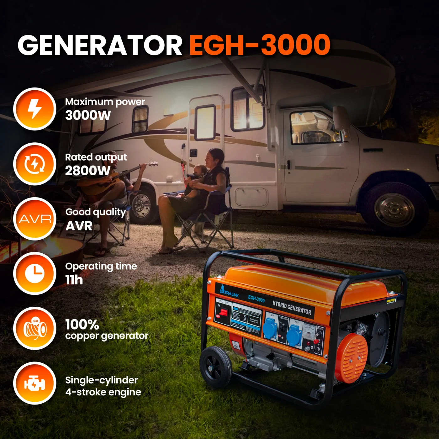 Extralink EGH-3000 Generador de energía híbrido, 3kW 1F