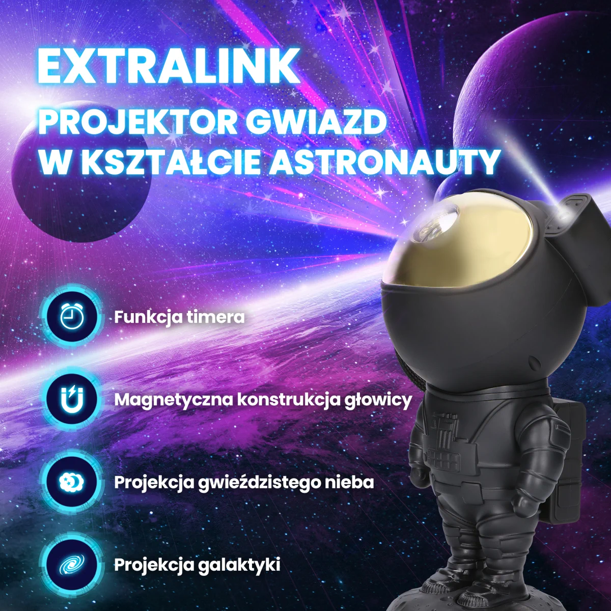 Extralink Home Projektor gwiazd CZARNY Lampka nocna, rzutnik dla dzieci, astronauta