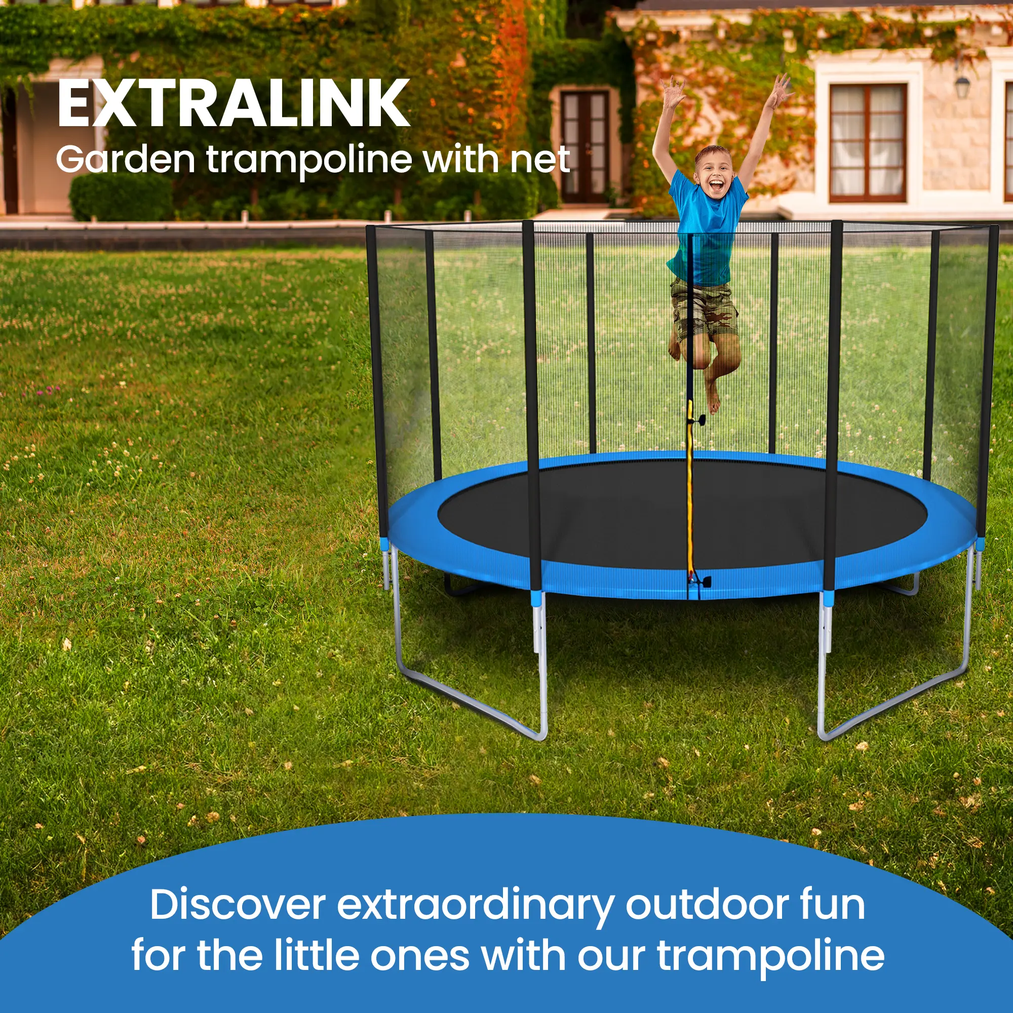 Garantizar la seguridad es una prioridad cuando se juega en una cama elástica. La Extralink 10FT incorpora una red de seguridad con una cómoda cremallera, que facilita tanto la entrada como el cierre de la cama elástica. La red ha sido cuidadosamente diseñada para ofrecer una protección y seguridad óptimas al saltar, eliminando el temor a caídas y lesiones. La capacidad de carga máxima es de 300 kg. El papel de los muelles en el funcionamiento de la cama elástica es crucial, ya que son los responsables de mantener tensa la lona, lo que requiere resistencia y fiabilidad. La cubierta de los muelles tiene una importante función de seguridad, ya que impide el acceso directo a los muelles y aumenta así la seguridad del usuario. La cama elastica viene tambien con una escalera para facilitar la entrada y el descenso.