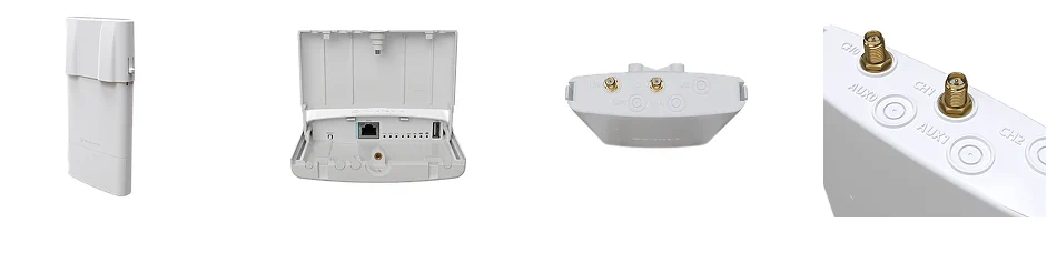 Los diseñadores del eje NetBox 5 se preocuparon por la comodidad de los administradores de red. La carcasa se puede abrir con una sola mano, lo que facilita mucho el mantenimiento y la instalación. Las salidas Ethernet están situadas en la parte inferior de la unidad, detrás de una puerta protectora. Además, la unidad está equipada con un soporte de montaje metálico para facilitar la instalación en una torre o poste, y se incluye un soporte para carril DIN.