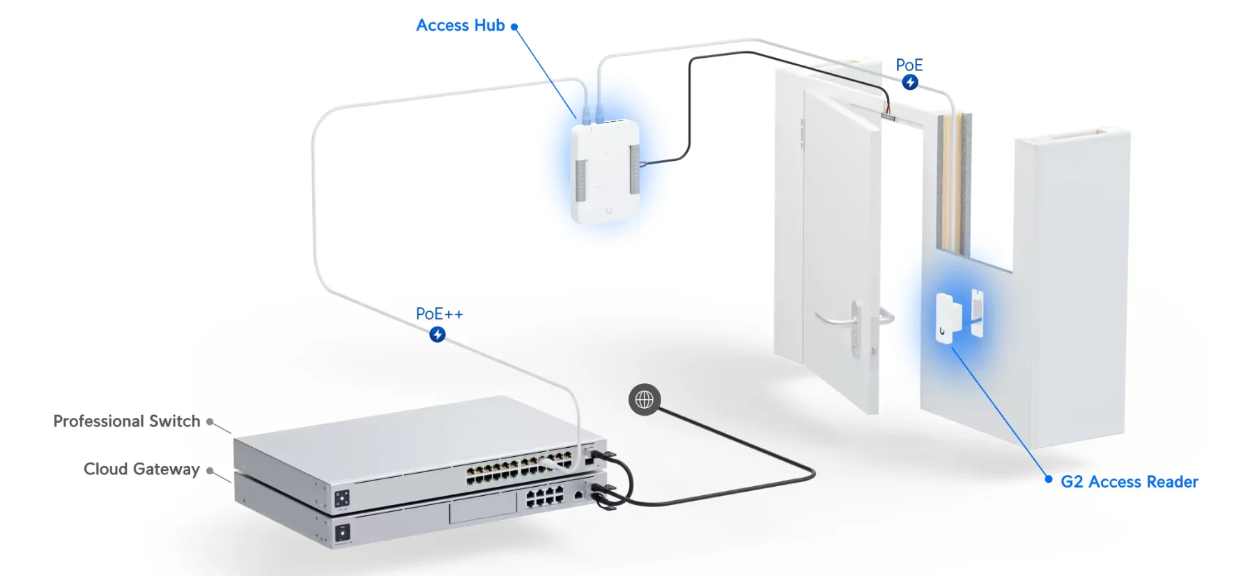 La instalación de todo el ecosistema Ubiquiti Access G2 Starter Kit es extremadamente rápida y sencilla. Con sólo unos pasos, podrá integrar todos los componentes y disfrutar de un control total sobre el acceso a sus instalaciones. El sistema se alimenta a través de PoE, lo que simplifica aún más la instalación al eliminar la necesidad de cableado adicional. No obstante, tenga en cuenta que la fuente de alimentación PoE no se incluye en la caja y debe adquirirse por separado.