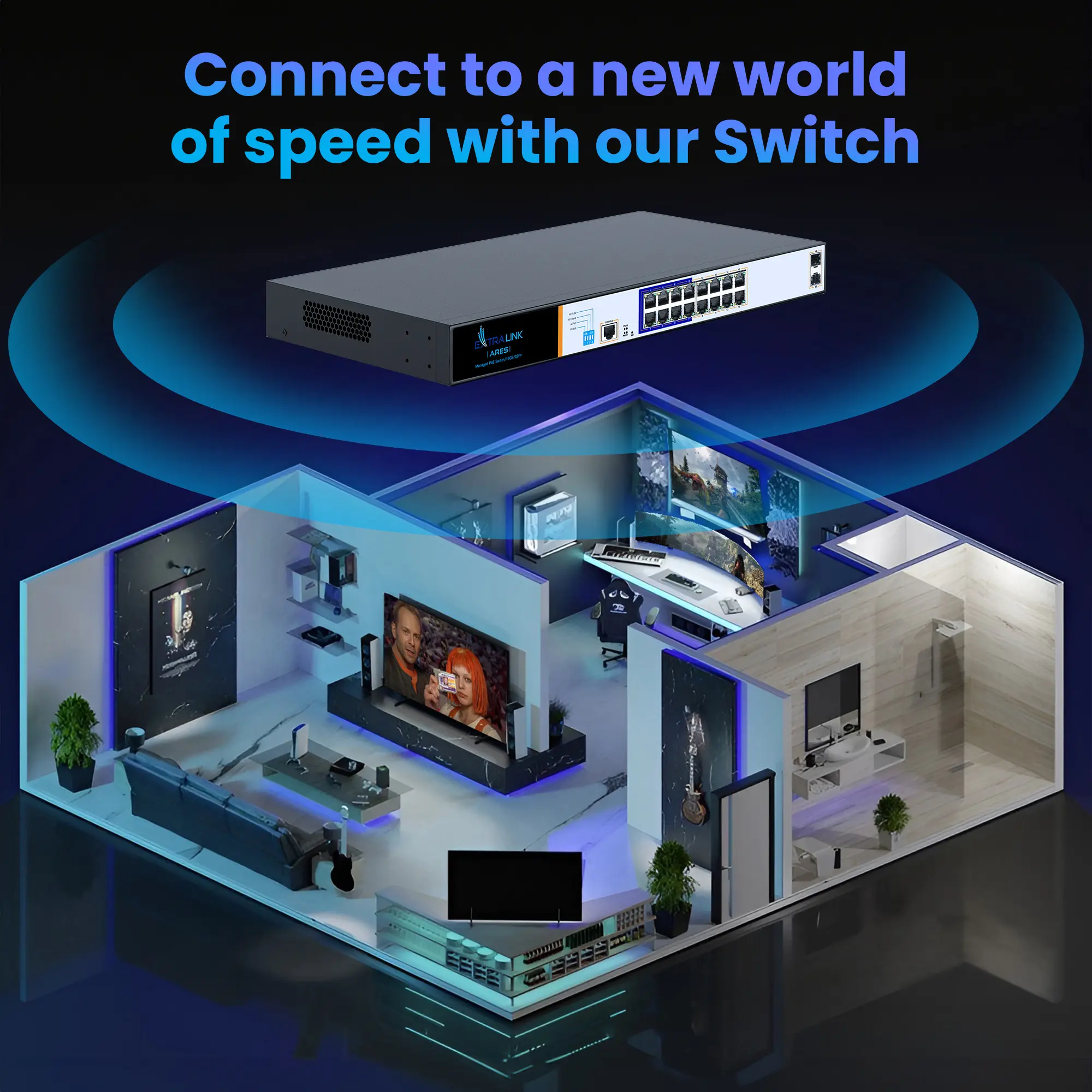 Extralink ARES - totalmente manejable, gigabit, interruptor de 16 puertos