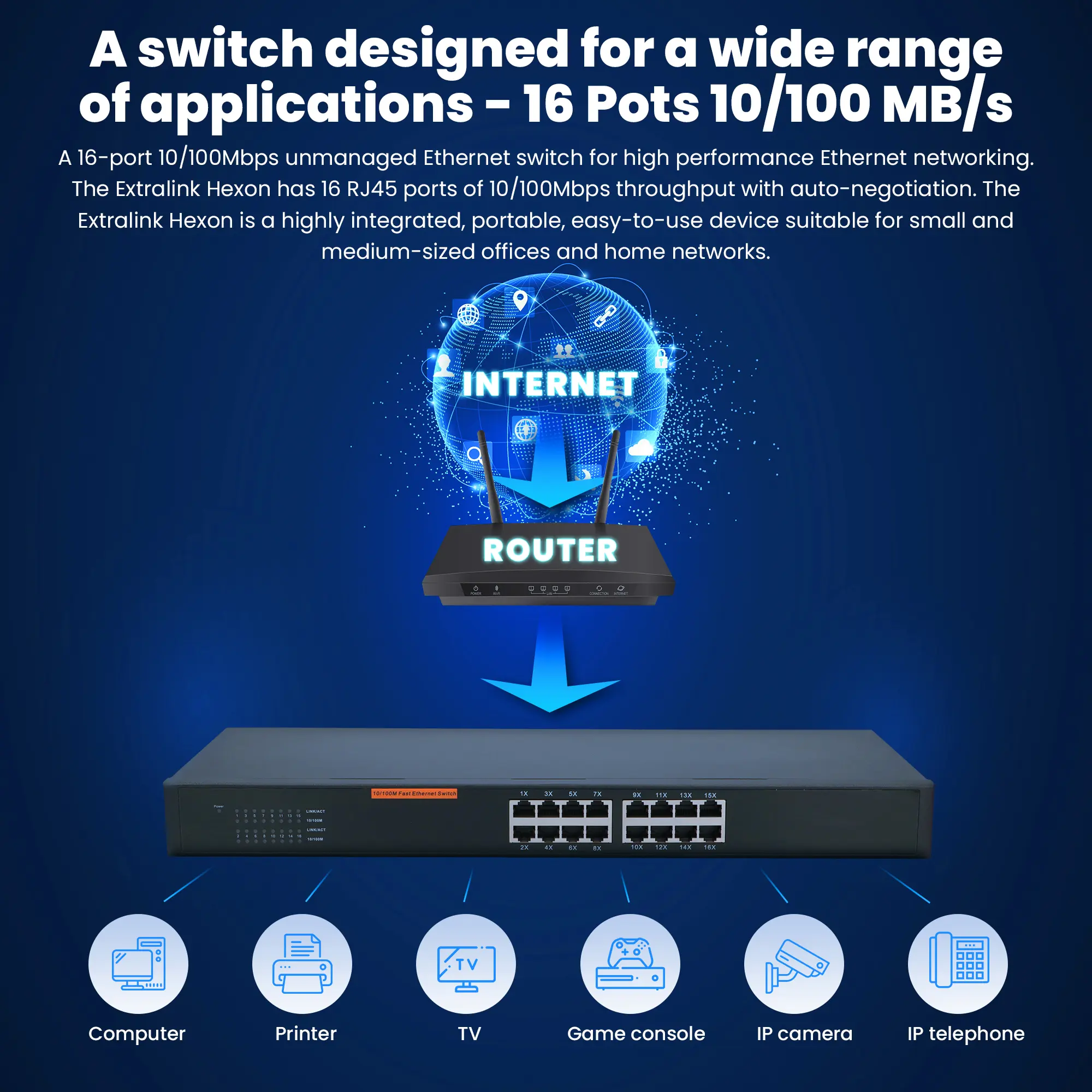 Extralink HEXON Switch 16x 10/100/Mb/s, Desktop