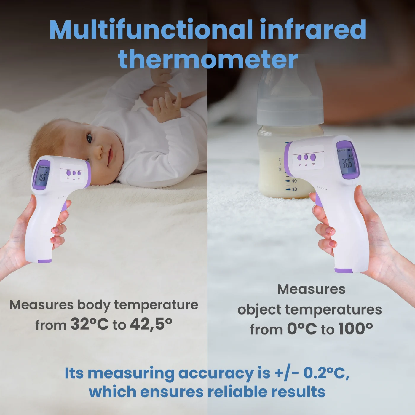 El termómetro de infrarrojos permite medir sin contacto la temperatura corporal o de superficies. Funciona recogiendo la radiación infrarroja emitida por un cuerpo u objeto y convirtiéndola en un valor de temperatura.