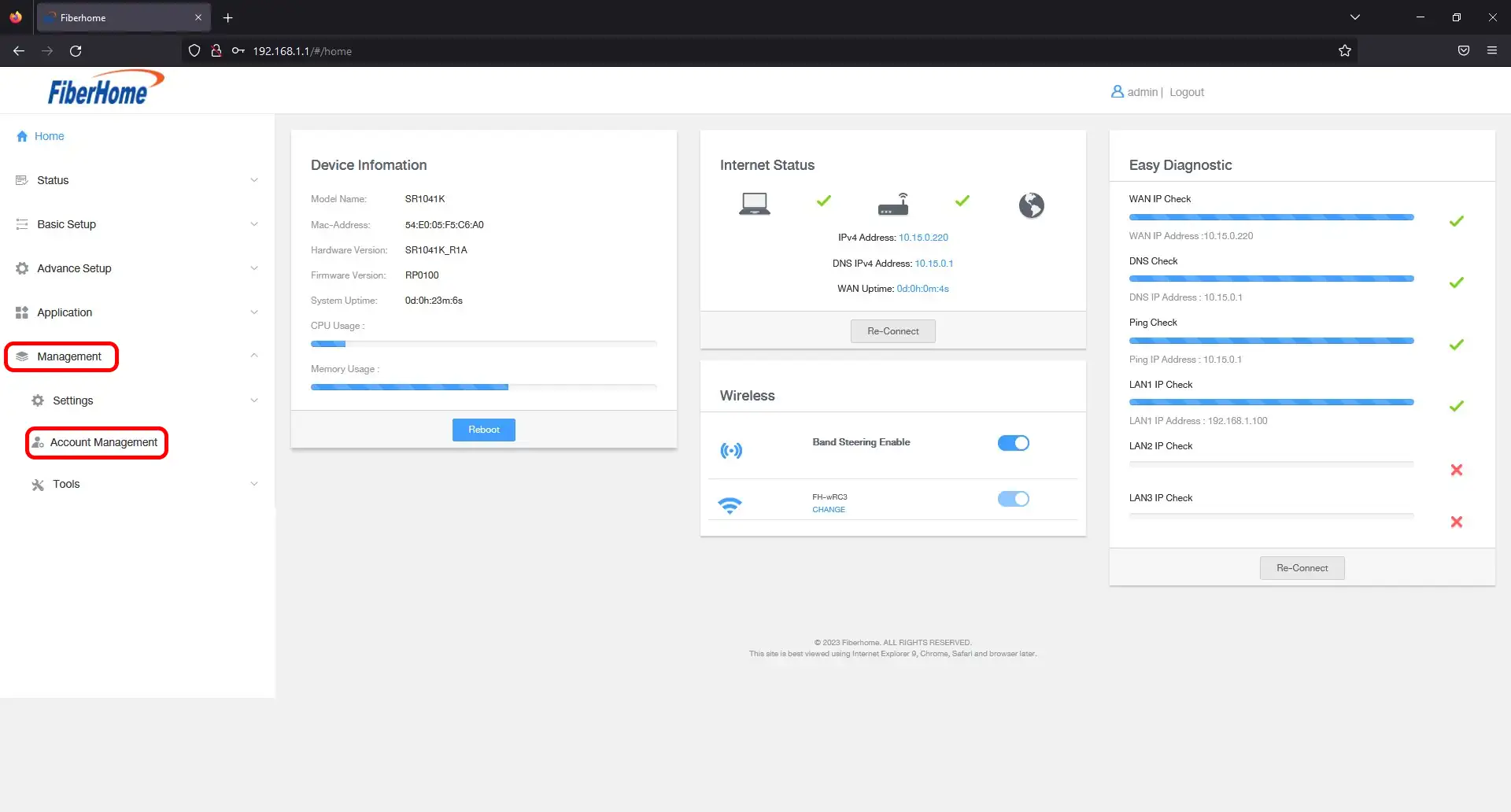 The FiberHome SR1041K is not a well-known router, but it is well established in the market. This router has a huge number of settings and supported options, making it a great device for ISPs, but it's also good for home use. It has 5GHz wireless coverage and is not expensive, making it a great competitor to routers from other brands. It's also worth noting that the FiberHome SR1041K supports the new Wi-Fi 6 standard (IEEE 802.11ax).