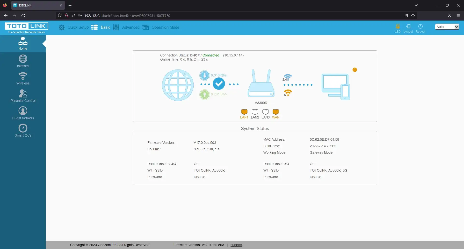 The Totolink A3300R is a simple, affordable router that meets today's standards for Wi-Fi and gigabit wired Internet. Like all Totolink devices, this router is easy to connect and configure. The first time you log in to 192.168.0.1, the router will ask you for the default password, which you should immediately change to a more complex one.