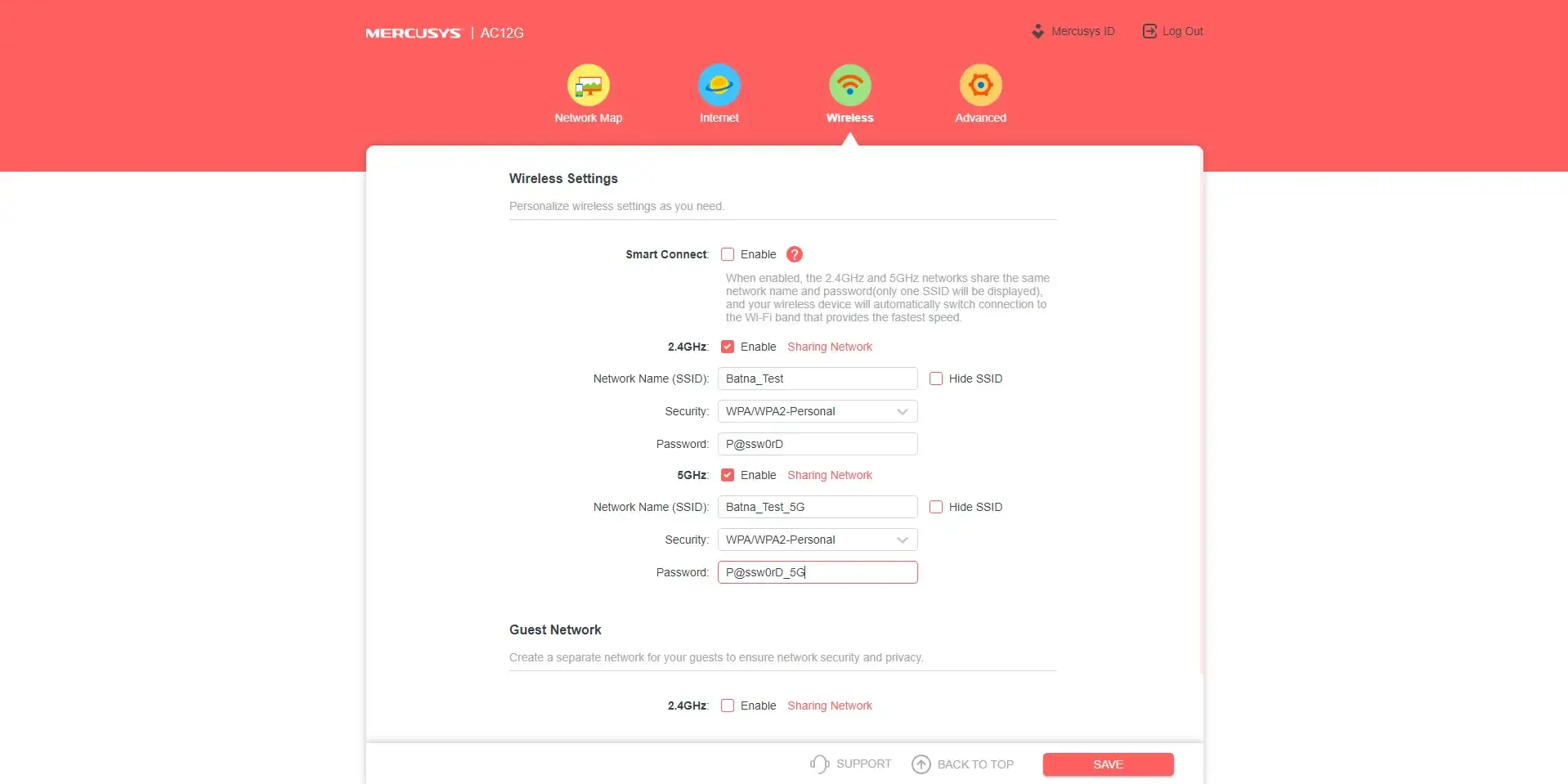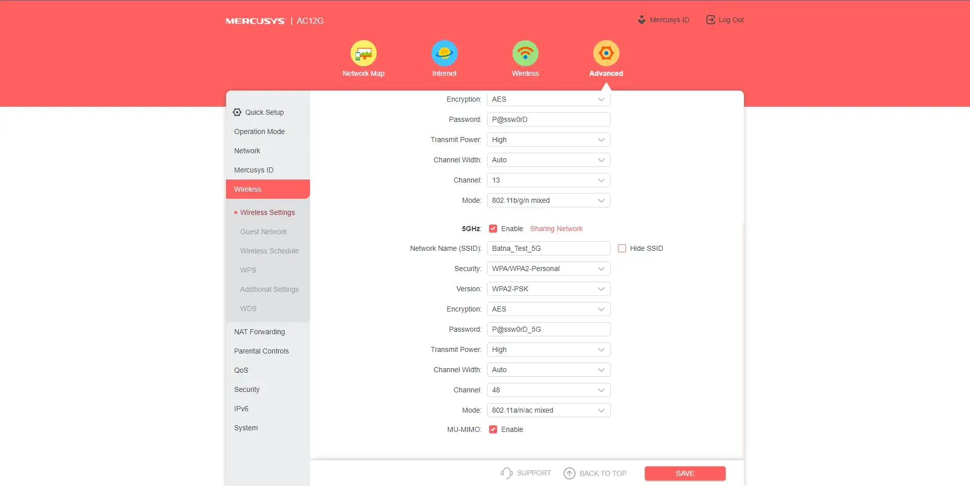 Configuring the wireless network is also quite simple. All the necessary settings can be found under Advaced -> Wireless, and you can already configure 2.4GHz and 5GHz Wi-Fi.