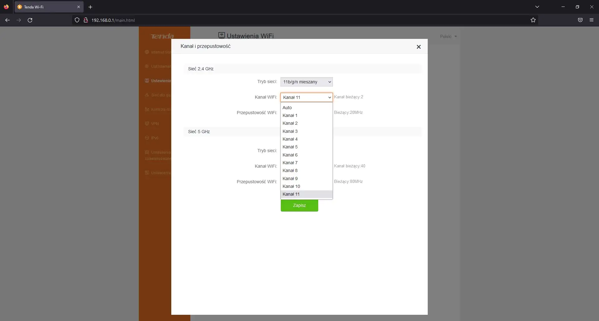 After changing your password, configure your Wi-Fi network so that it works stably and smoothly. The best way to do this is to check the network load in your location using special applications or programs. However, in order not to complicate the configuration, let's simply set the channels that are usually the least busy. On the 2.4GHz frequency, channels 1, 6 and 11 are the least busy. The 5GHz frequency is still not very busy, but you could also choose channel 100.