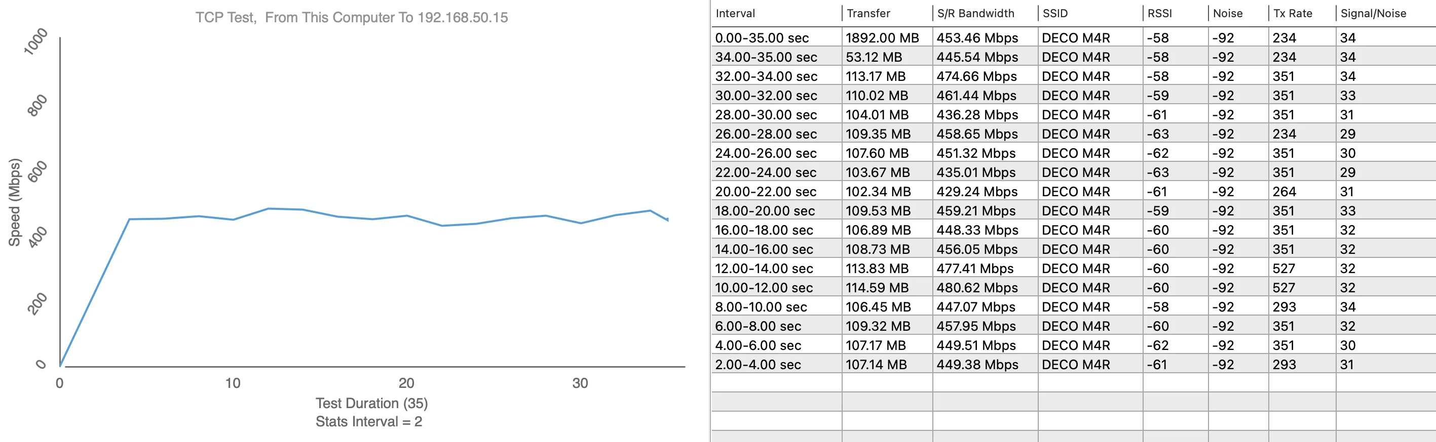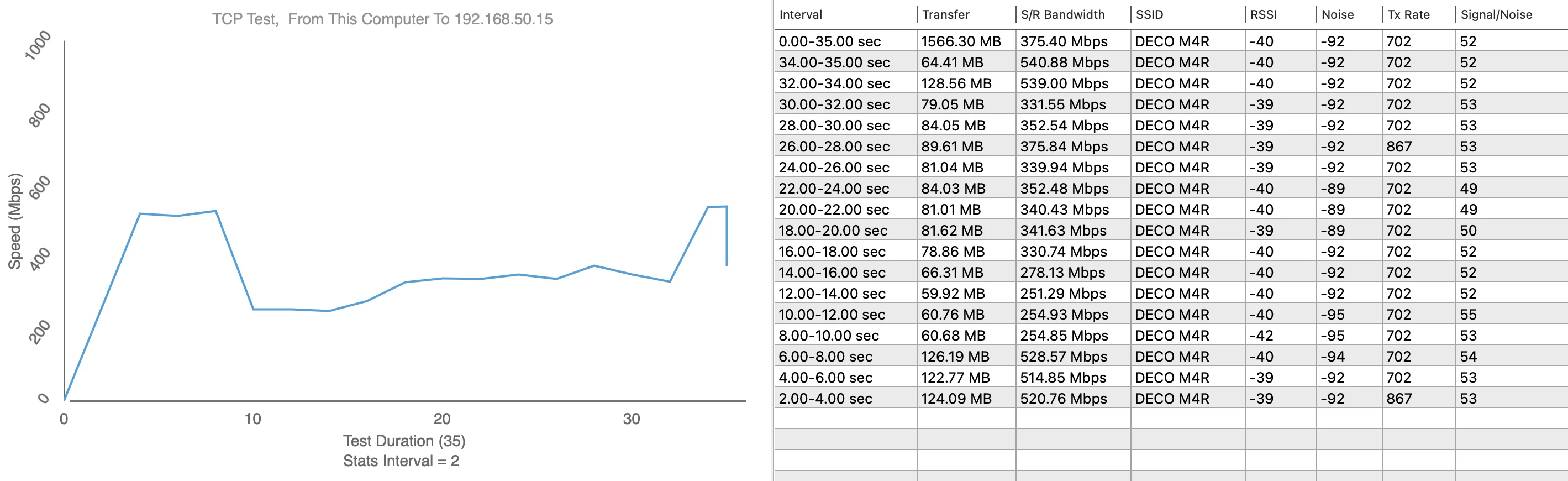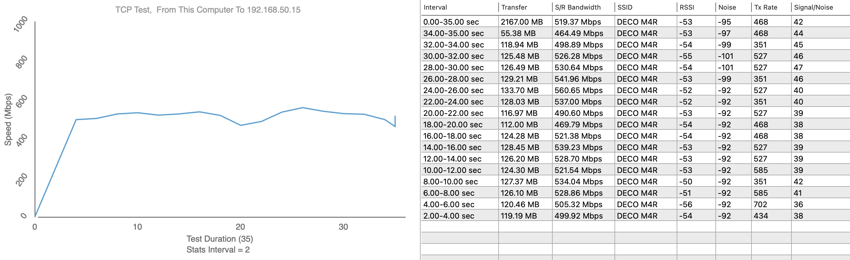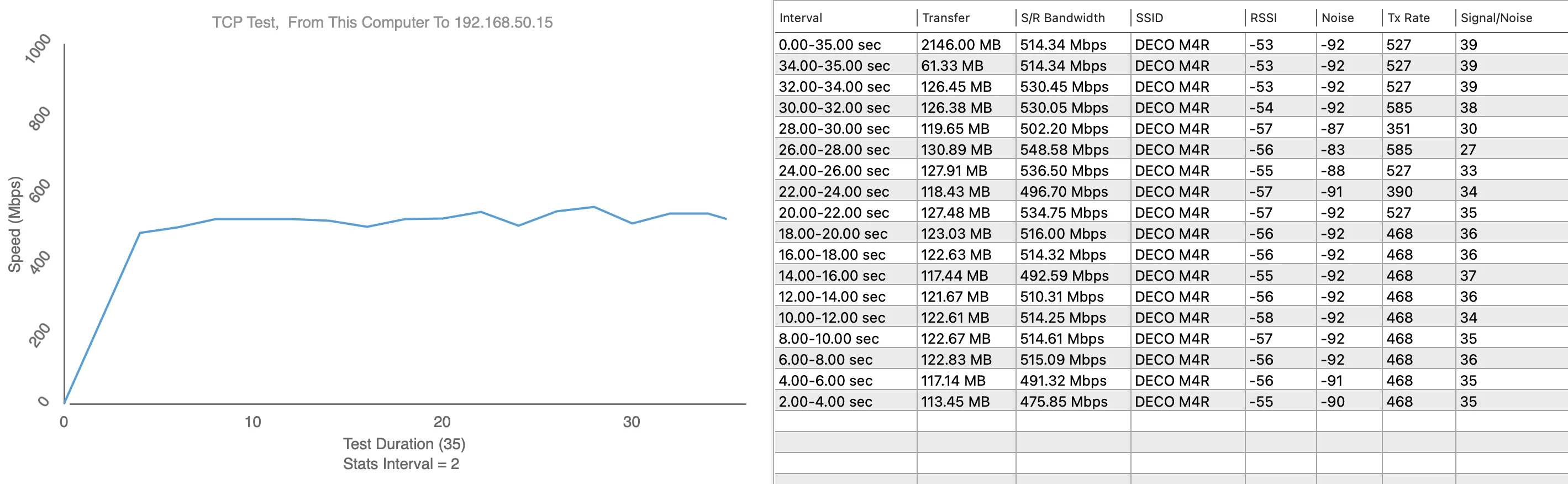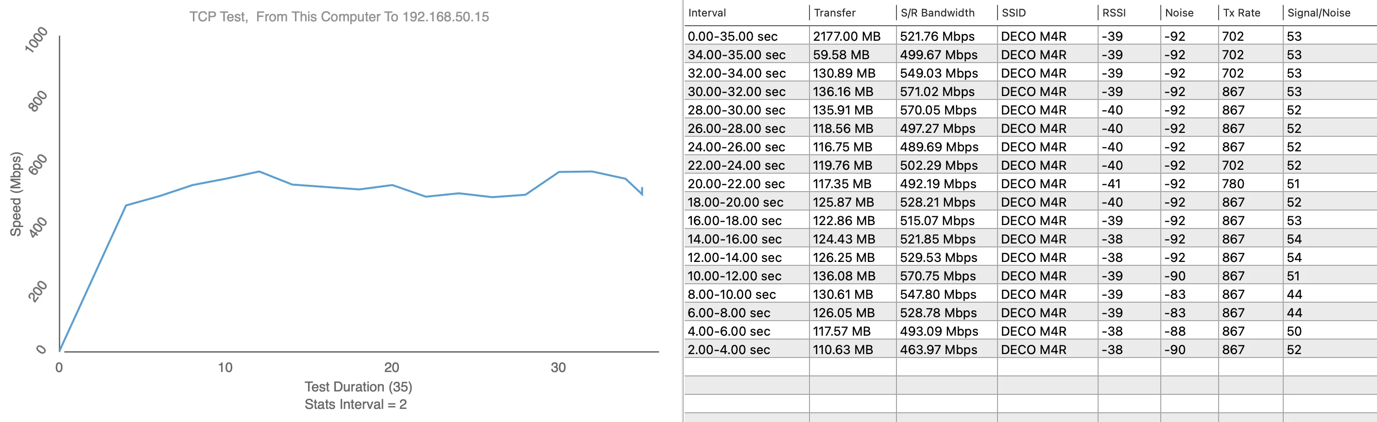After firing up the home WiFi system, there was WiFi coverage at all the points indicated. In the room where the device was set up, the best throughput was 571 Mbps.