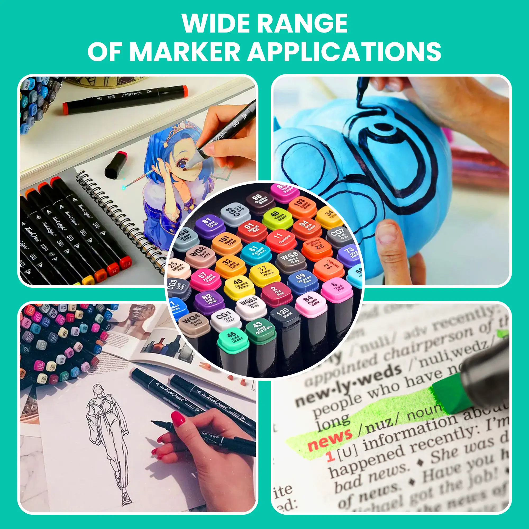 The artists' marker set is a versatile choice for a wide range of artistic endeavors. Whether you're into drawing, coloring, comic art, fashion design, calligraphy or even crafts, the markers will work perfectly. The main feature of these double-sided markers is their brush-like tip, which is suitable for a variety of artistic techniques and styles.