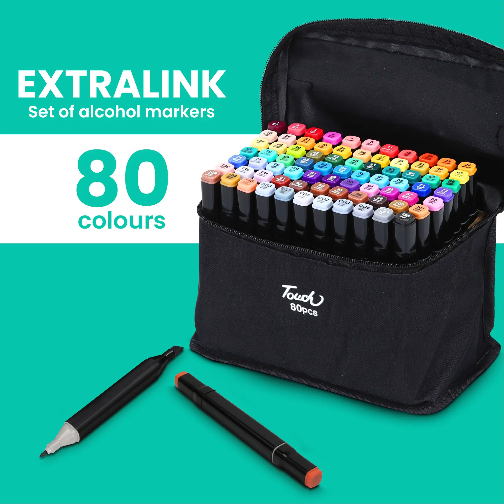 Extralink | Alcohol marker set | 80 colors, dual tips