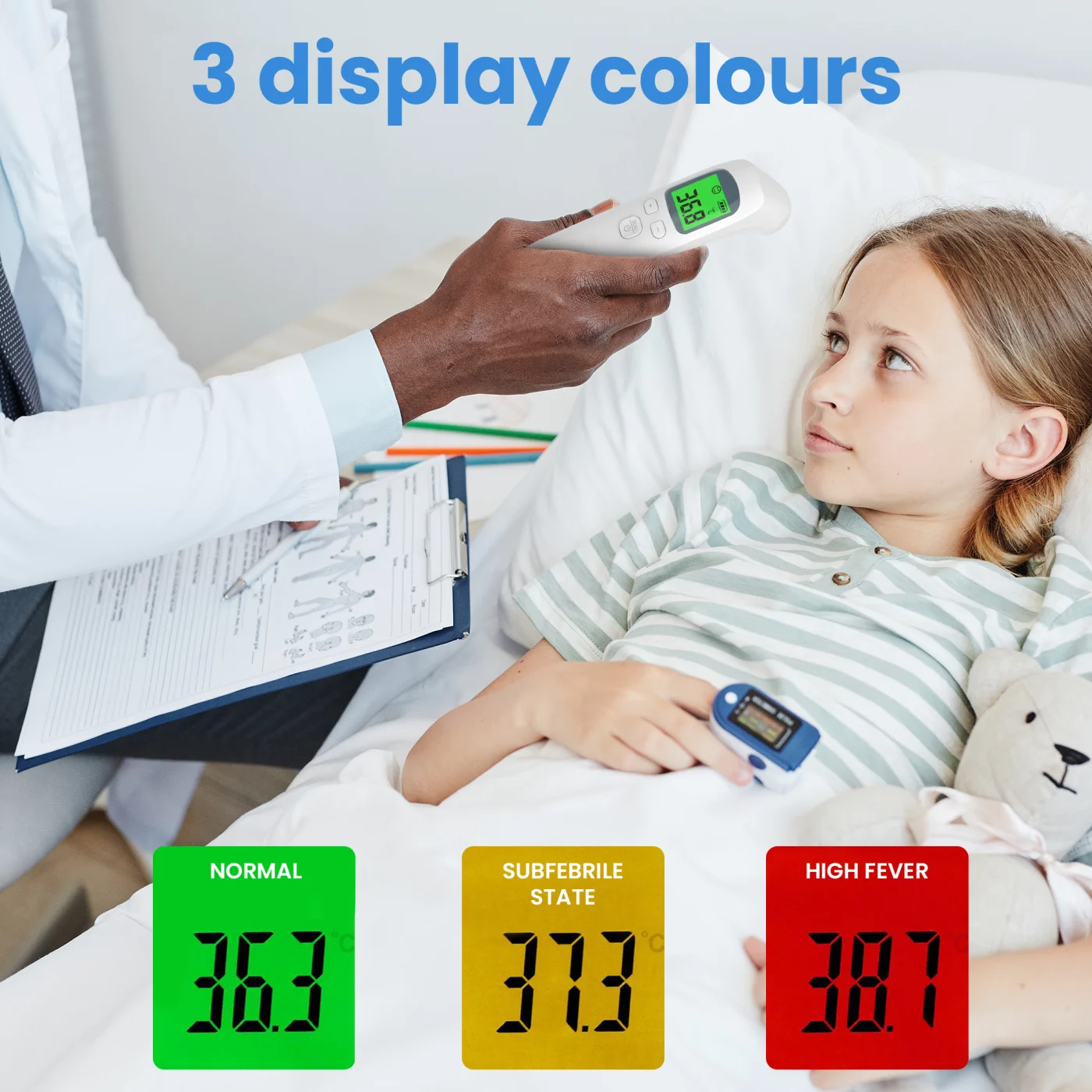 Infrared thermometers allow temperature measurement without direct contact with the body. This works by collecting infrared radiation emitted by the body or object