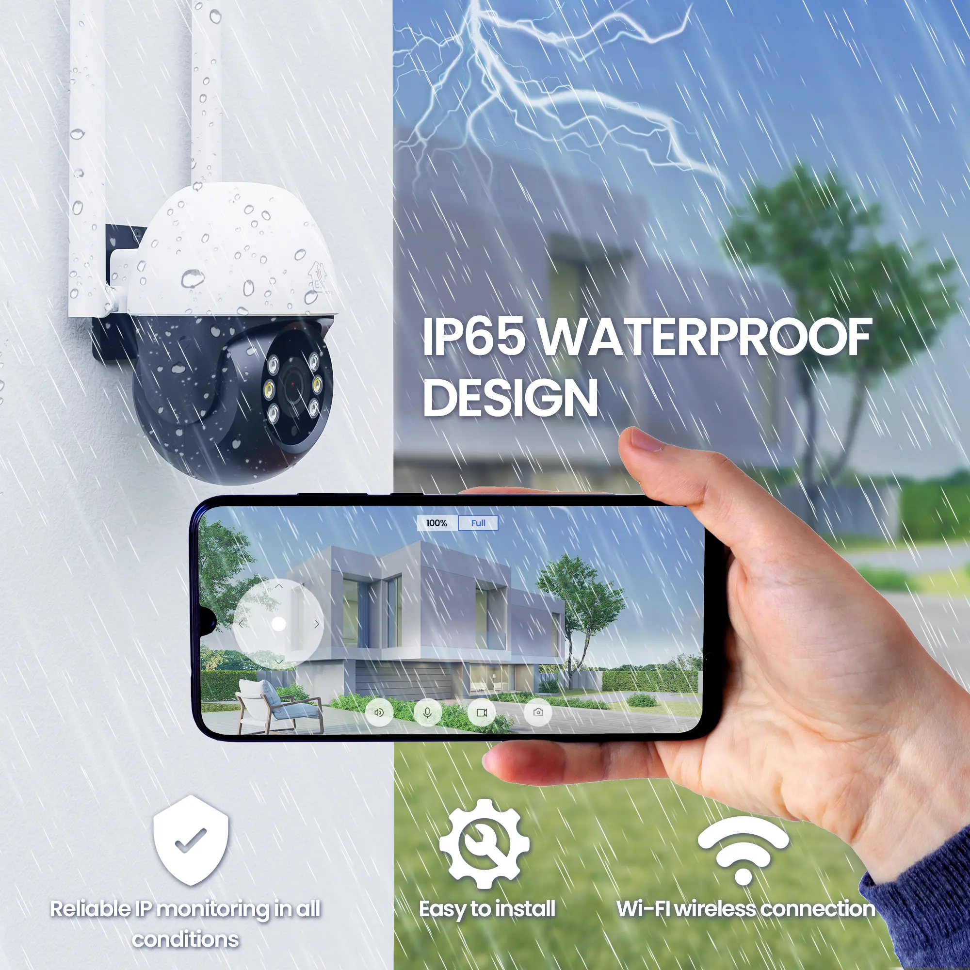 The wireless wifi camera has an IP65 (waterproof class) design, which completely prevents dust and water from entering. The wifi ip camera can work flawlessly outdoors, regardless of heavy rain or sun exposure. You don't have to worry about rain and snow affecting image quality.