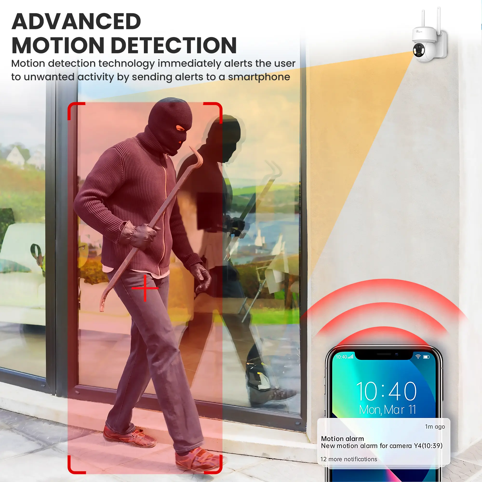 - Advanced motion detection: Motion detection technology instantly alerts you to unwanted activity by sending alerts to your smartphone