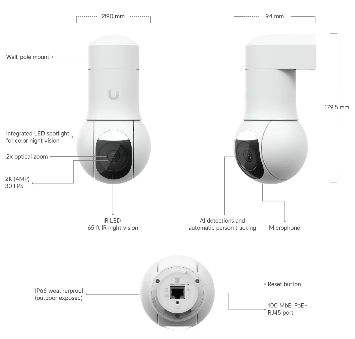 Ubiquiti UVC-AI-Theta-ProLens360 | IP camera | low profile, H: 180°, V: 180°, D: 180°, 4MP 2160 x 2160, 24fps