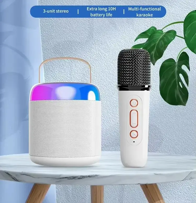 Extralink Kids Wireless Karaoke LED Circle Speaker with Dual Microphone - White