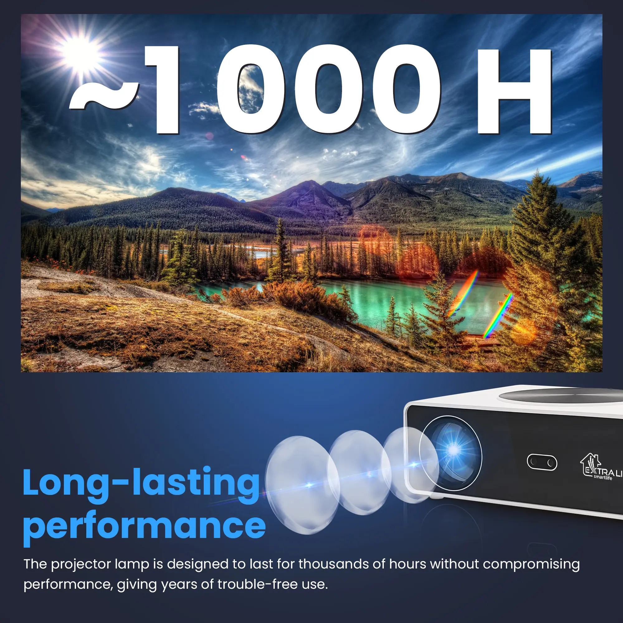 Long-lasting Performance: The projector's lamp is designed for thousands of hours of use without loss of performance, which translates into years of continuous, trouble-free use.