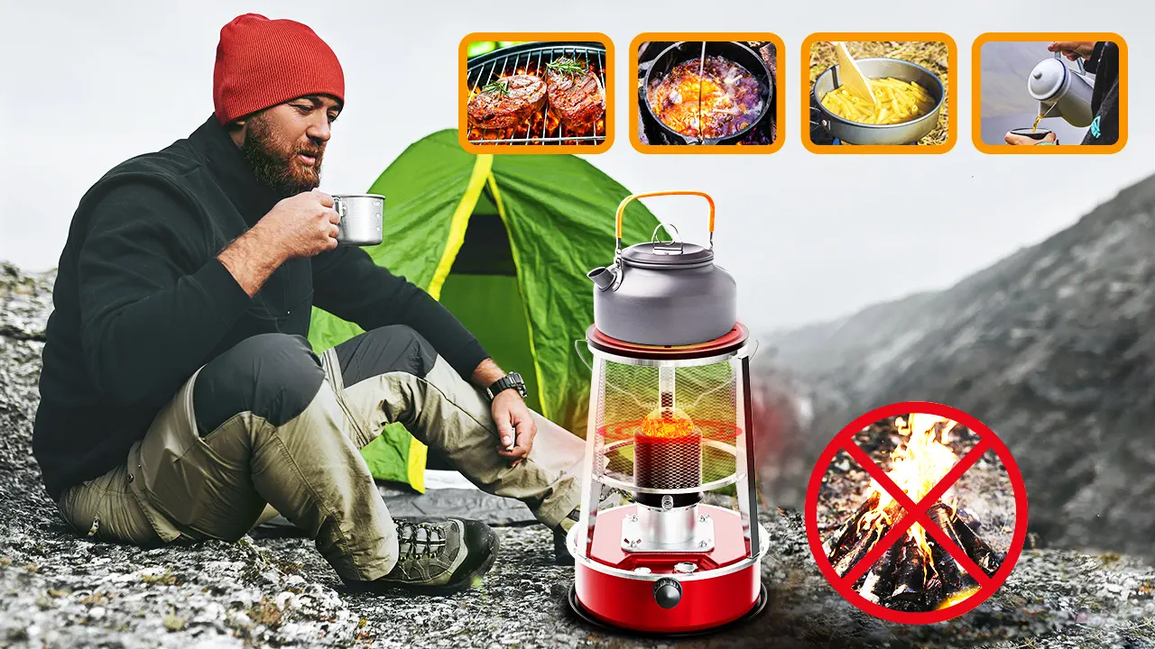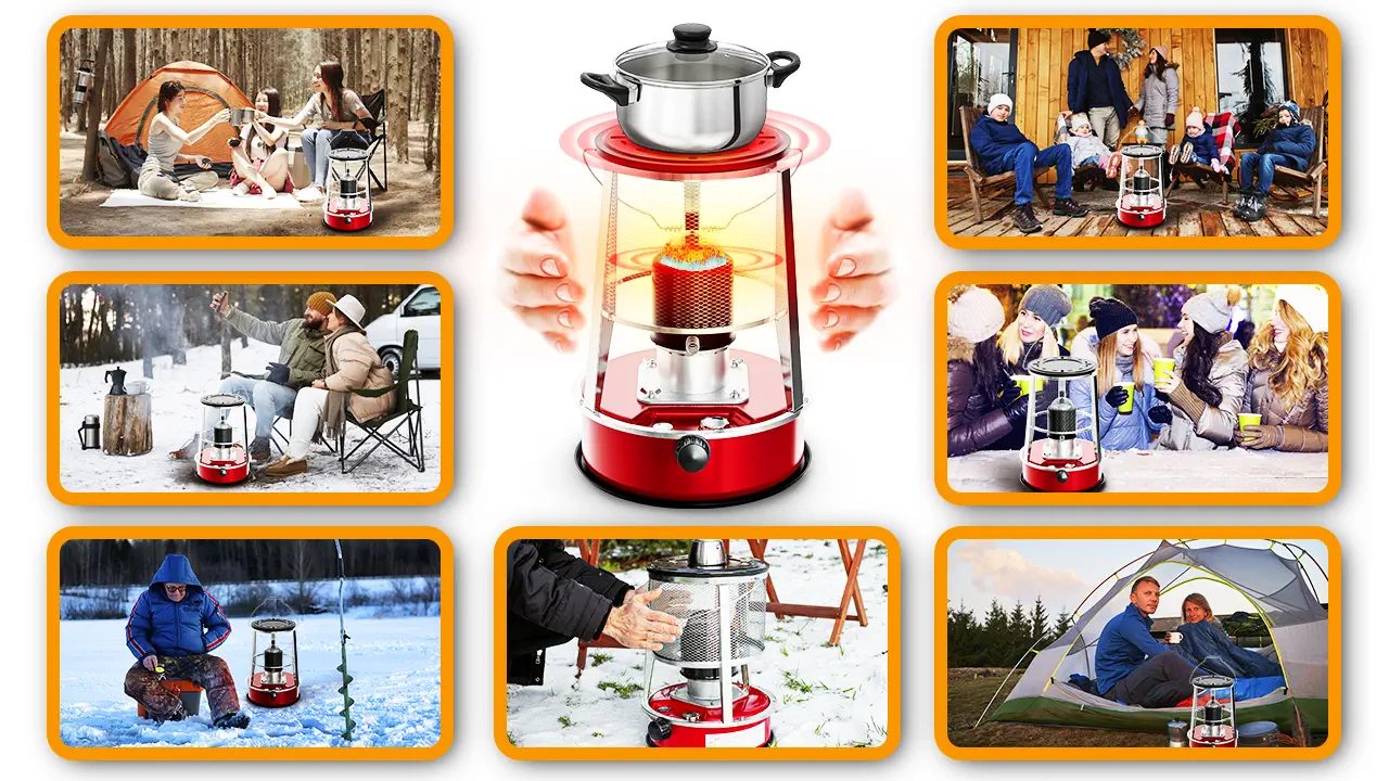 Kerosene heaters can be used at campgrounds, gardens, tents, balconies. The kerosene stove can heat, cook and illuminate the surroundings, the portable design allows it to be used during camping trips, fishing or during a picnic as an emergency heat source.