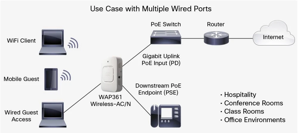 Cisco WAP361 Access Point Dual Band, AC1200 Wave 2, 2x2 MIMO, 5x RJ45 1Gb/s, PoE