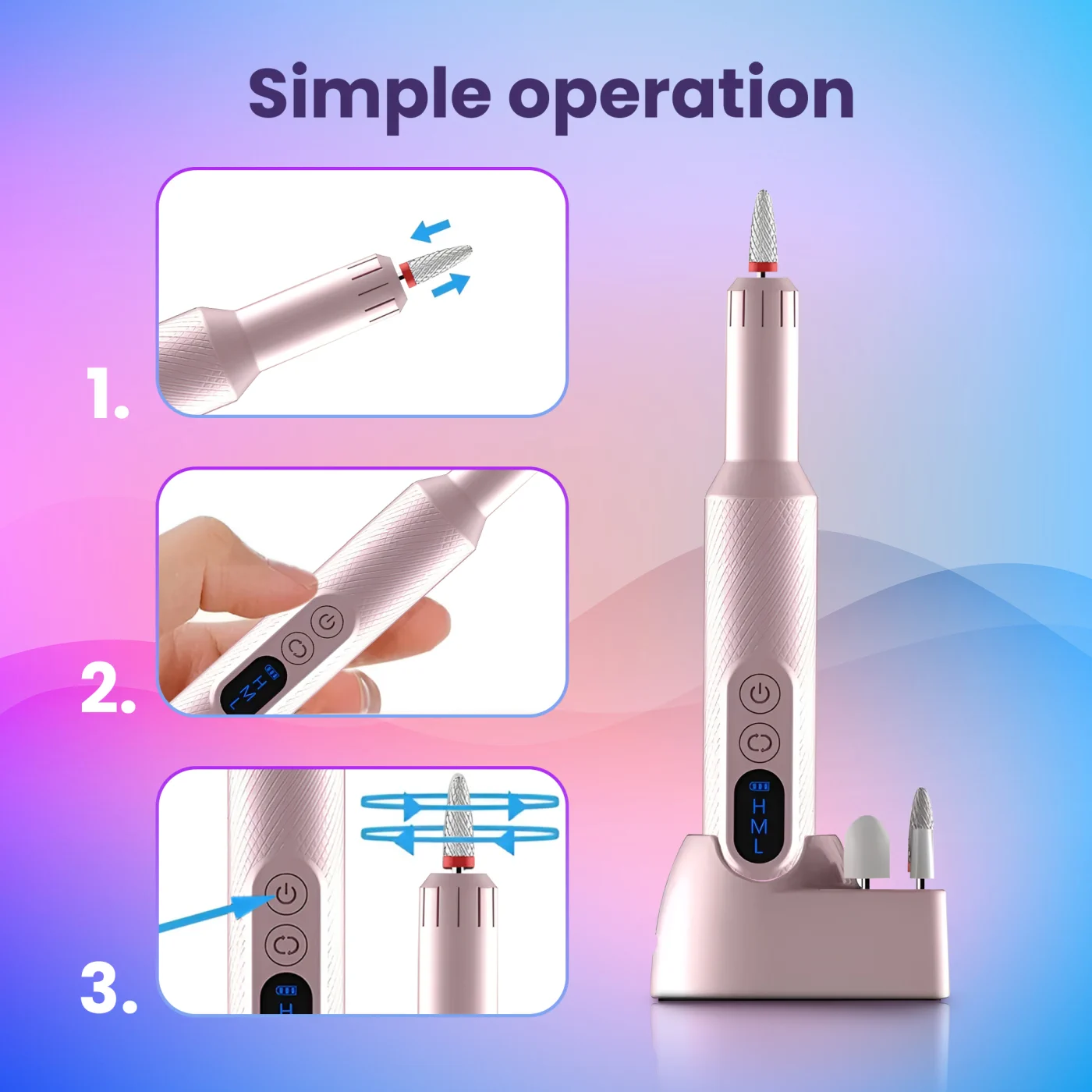 Provate l'impareggiabile facilità e qualità di una manicure professionale senza uscire di casa con una fresa per unghie senza fili all'avanguardia. Dimenticate il fastidio dei cavi corti e aggrovigliati. L'innovativo design senza fili offre la massima comodità nel modellare, limare e lucidare le unghie, portandole alla perfezione. Che siate a casa o in viaggio, ora la vostra manicure sarà sempre a portata di mano.