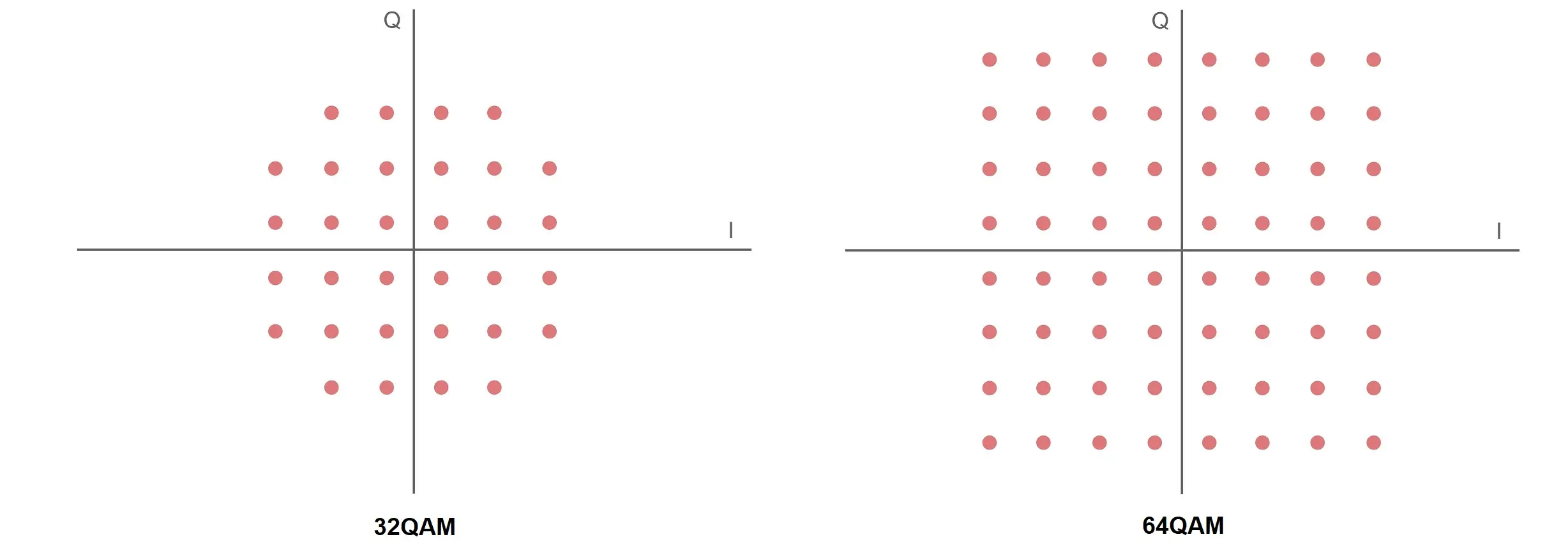 Istotne jest również to, że ze względu na zmniejszone odległości pomiędzy różnymi punktami na diagramie konstelacji, konieczne jest używanie formatów modulacji wyższego rzędu tylko wtedy, gdy jakość łącza jest dobra tzn. gdy poziom mocy sygnału jest wysoki, a poziom szumu niski.